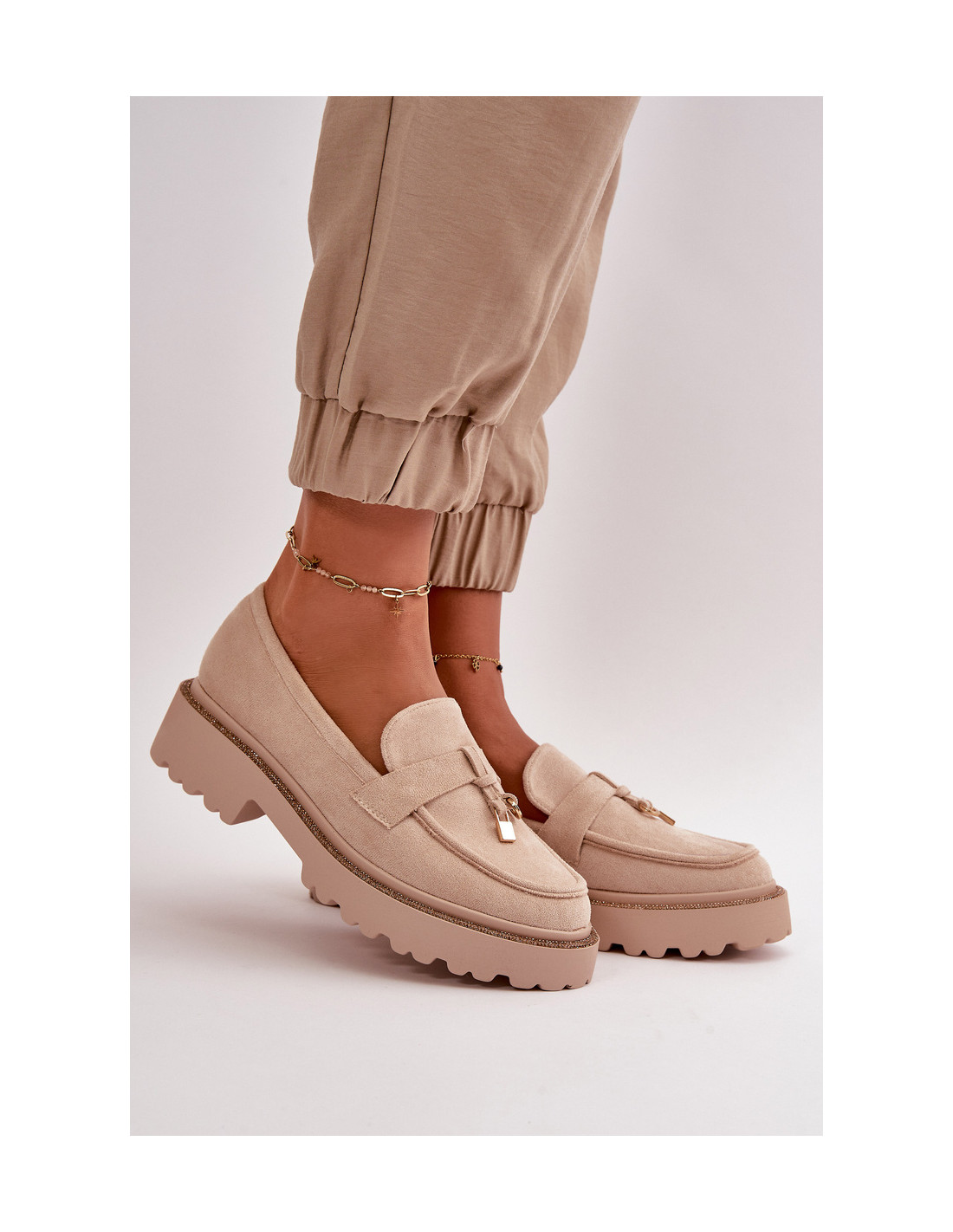 Moteriški mokasinai su subtiliu, blizgančiu dekoru, suteikiančiu elegancijos ir subtilaus žavesio. Pagaminta iš ekologiškos zomšos. Suapvalinti kojų pirštai. Šis modelis puikiai papildys tiek kasdienį, tiek formalesnį stilių. Renkantis dydį, vadovaukitės dydžių lentele.