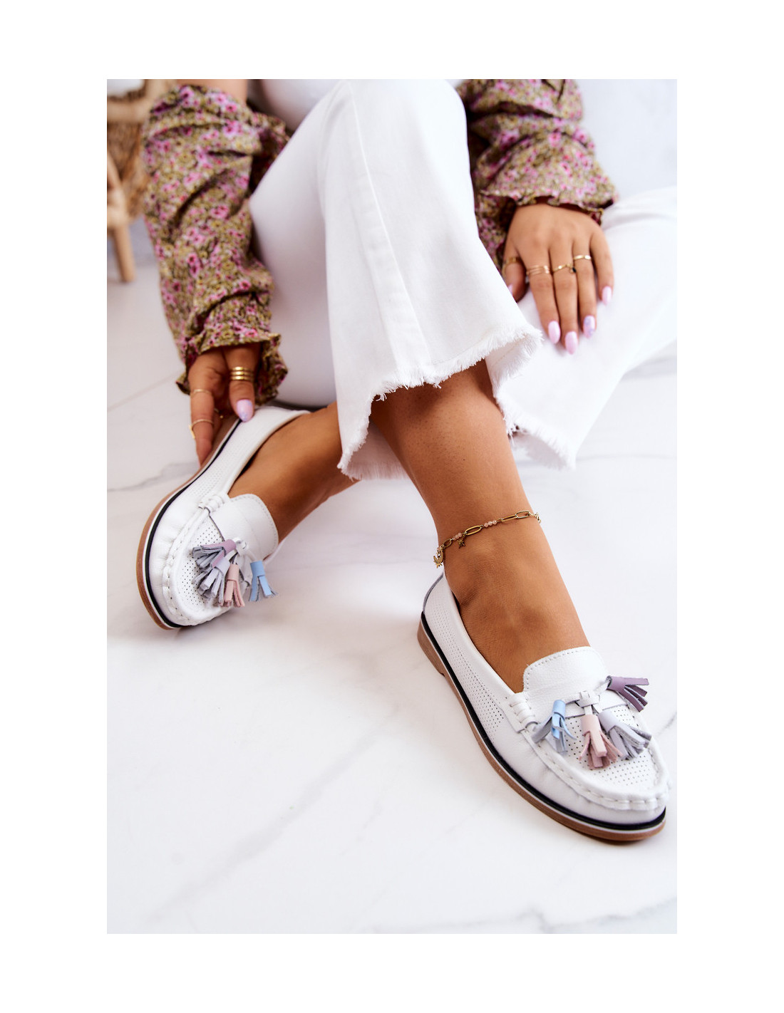 Loafers yra batai, kurie niekada neišeis iš mados. Jie tinka tiek kasdieniam, tiek elegantiškesniam stiliui. „Comfort Shoes“ odinis vidpadis su subtilia perforacija yra komforto garantija naudojant. Viršus pagamintas iš perforuotos natūralios odos su dekoratyviniais kutais priekyje. Padas iš guminės medžiagos plokščiu kulnu papildomai neslysta. Puikus modelis, kurį turėtumėte turėti savo garderobe! Renkantis dydį, naudokite dydžių lentelę.