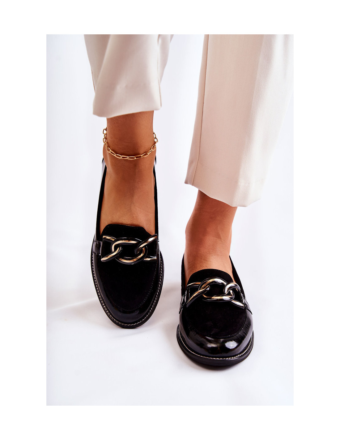 Elegantiški Laura Messi prekės ženklo mokasinai yra pagaminti iš natūralios odos ir natūralios zomšos derinio. Odinis vidpadis užtikrins aukštą naudojimo komfortą. Nustatykite ant plokščio kulno su dygsniuotu padu. Šių batų priekyje yra madinga grandinėlė. Suapvalinta nosis. Mokasinai turi standų kulno skaitiklį. Būtinai peržiūrėkite visą mūsų mokasinų kolekciją! Renkantis dydį, naudokite dydžių lentelę.