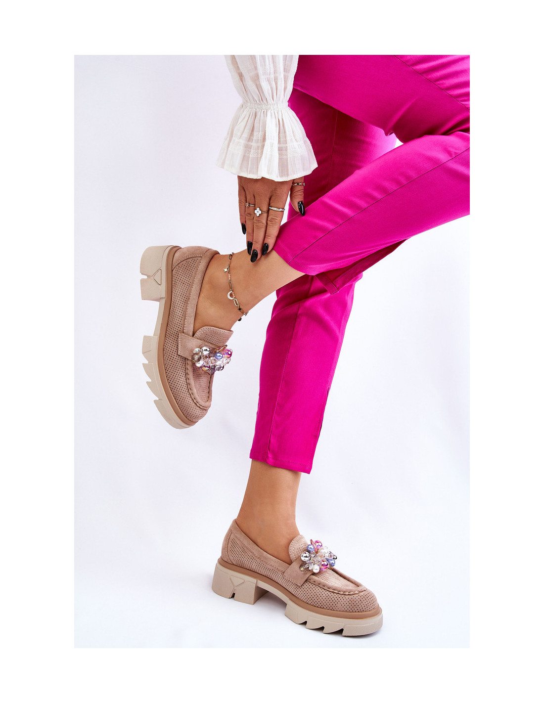 Moteriški Loafers Batai su ornamentais Beige Isac