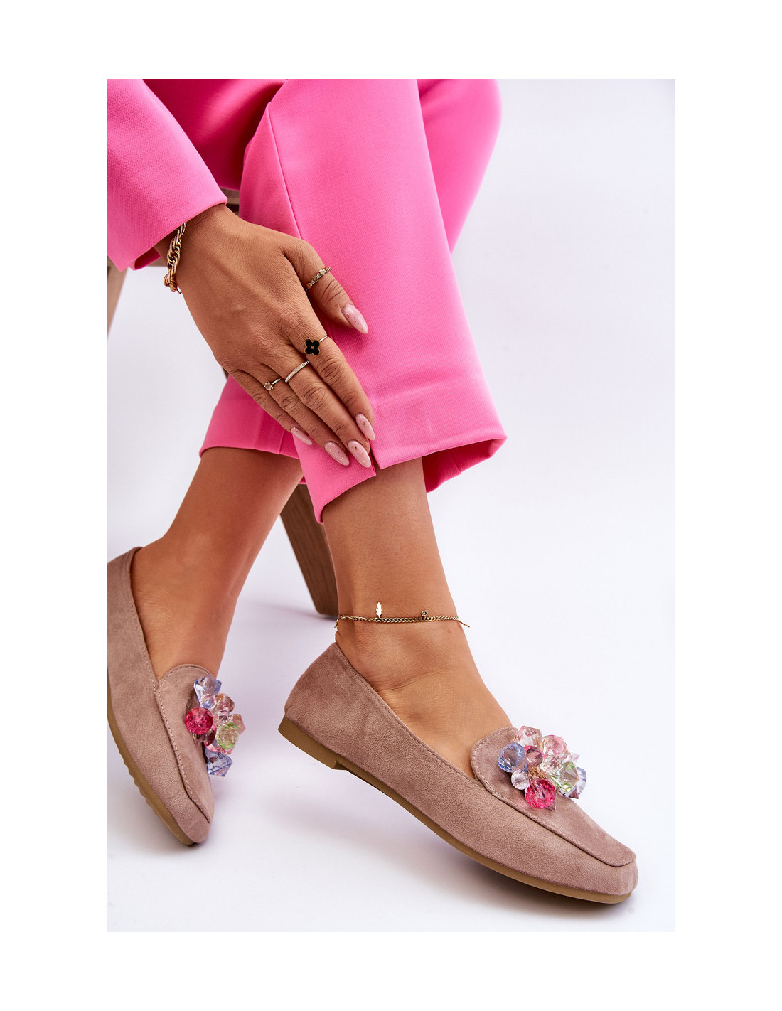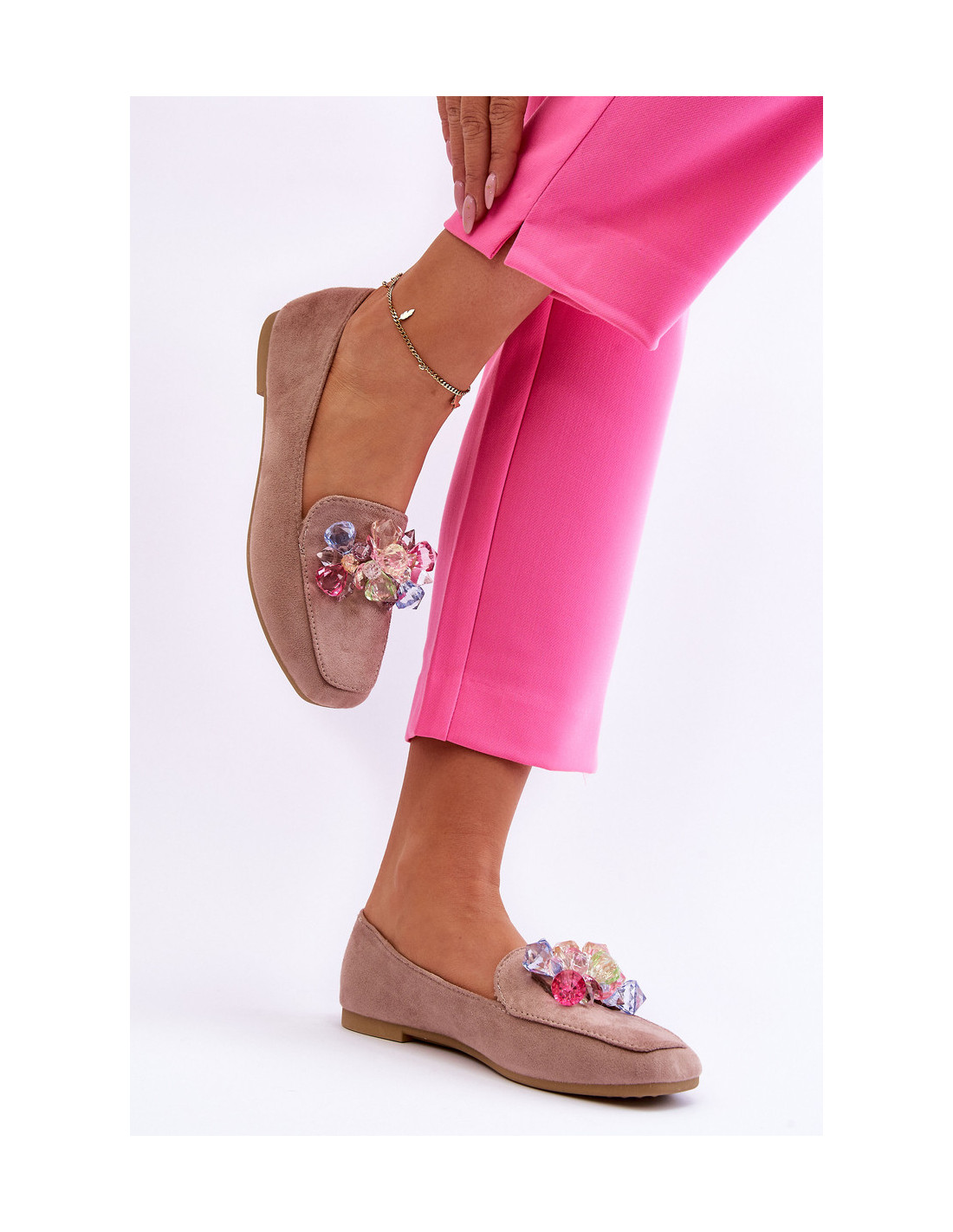 Zomšiniai loaferiai su puošniais kristalais Tamsiai smėlio spalvos Arvilla