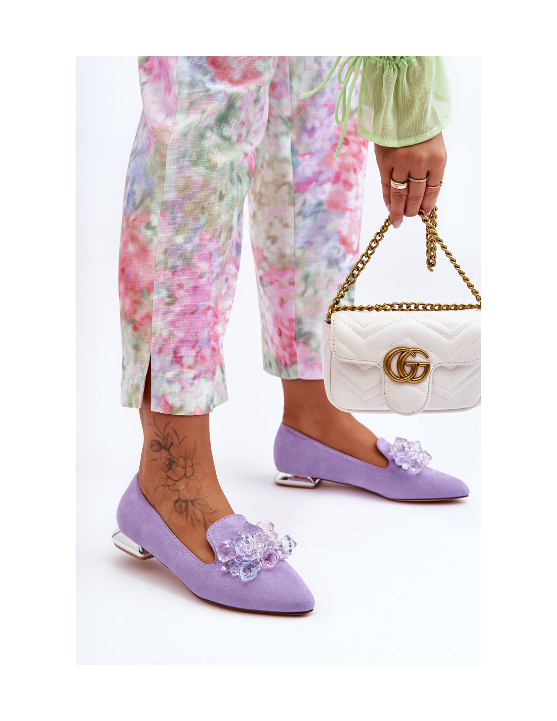 Moteriški batai yra pagaminti iš malonios liesti ekologiškos zomšos. Priekyje yra dekoratyvinių kristalų imitacijos. Loaferiai buvo nustatyti ant plokščio kulno. Kulno stalviršis yra šiek tiek standesnis, o vidpadis pagamintas iš eko odos, leidžiančios patogiai naudoti avalynę. Šie elegantiški bateliai puikiai tinka daugeliui stilių! Rinkdamiesi dydį, vadovaukitės dydžių lentele.