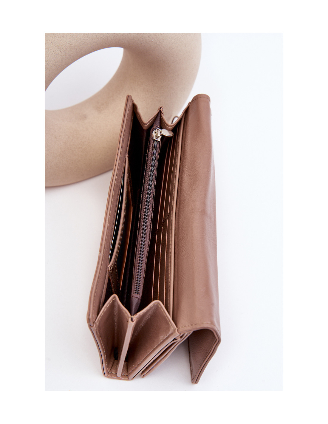 Moteriška piniginė pagaminta iš eko odos. Stačiakampio formos modelis. Piniginėje yra kišenė su užtrauktuku ir pagrindinė kišenė, užsegama magnetiniu segtuku. Viduje yra papildomi skyreliai ir vieta kortelėms. Jūs tikrai turėtumėte jį turėti!