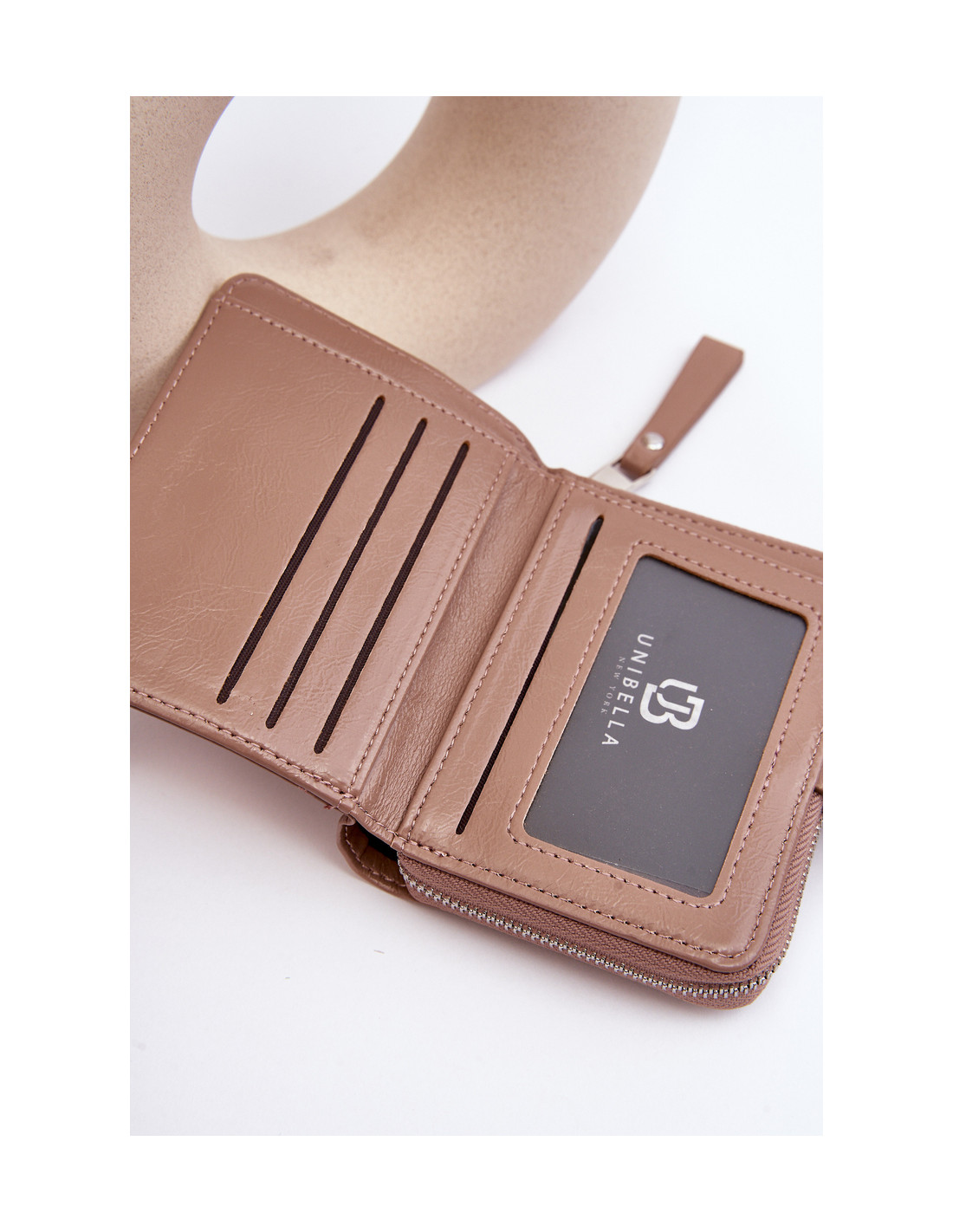 Elegantiška, maža moteriška piniginė iš eko odos. Tvirtinama magnetuku. Šis modelis turi išorinę monetų kišenę, užsegamą užtrauktuku, kuri palengvina prieigą prie nedidelių pinigų. Šiame modelyje taip pat yra vietos banknotams ir kortelėms.