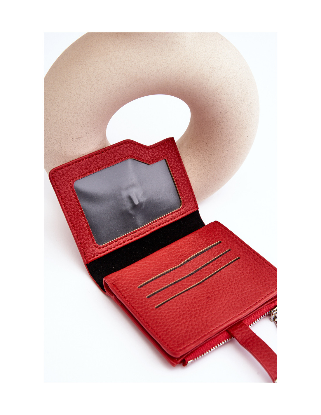 Moteriška piniginė pagaminta iš eko odos. Tvirtinama magnetiniu segtuku. Viduje yra vietos banknotams, kortelėms ir nuotraukoms. Papildoma kišenė užsegama užtrauktuku. Šis modelis yra mažas, bet tikrai sutalpins būtiniausius daiktus.