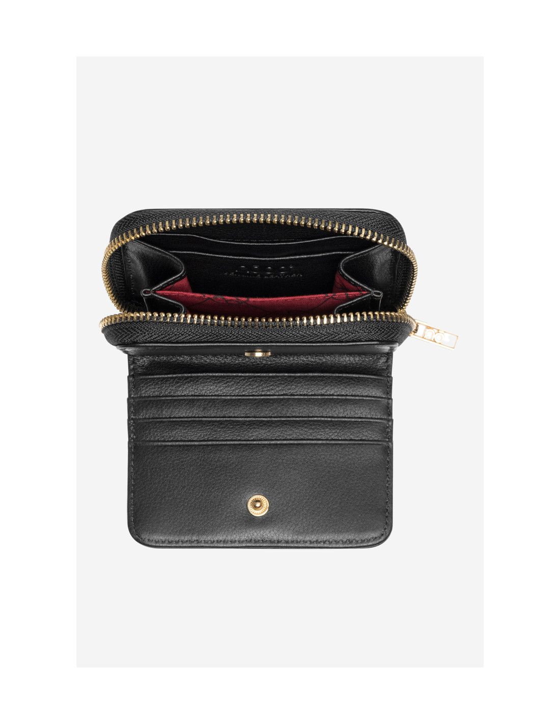 Maža moteriška piniginė pagaminta iš lygios natūralios odos. Viduje yra dvylika kortelių kišenių. Kišenėje su užtrauktuku yra skyrius, kuriame galite sutalpinti banknotus ir monetas. Modelis supakuotas elegantiškoje raudonoje dėžutėje. Puikiai tinka dovanai!