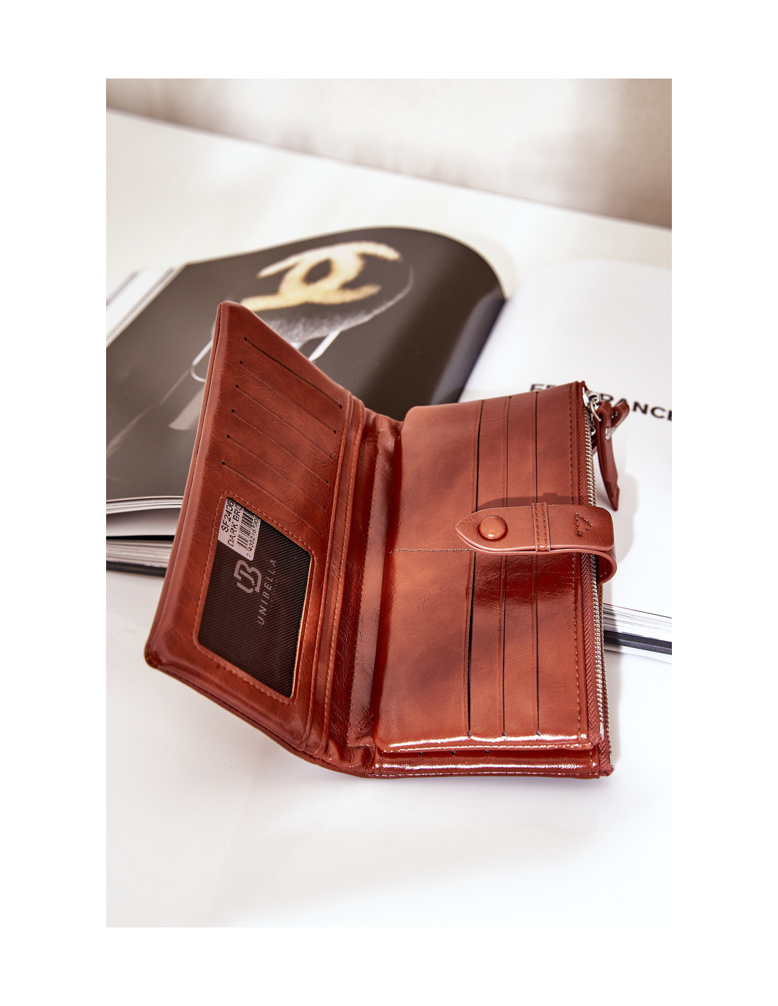 Stilinga moteriška piniginė iš eko odos, kurioje funkcionalumas derinamas su elegancija. Viduje yra dvi praktiškos kišenės su užtrauktuku, puikiai tinkančios monetoms. Daugybė kortelių lizdų leidžia patogiai organizuoti. Puikus priedas prie bet kokios rankinės, puikiai tinkantis kasdieniam naudojimui.