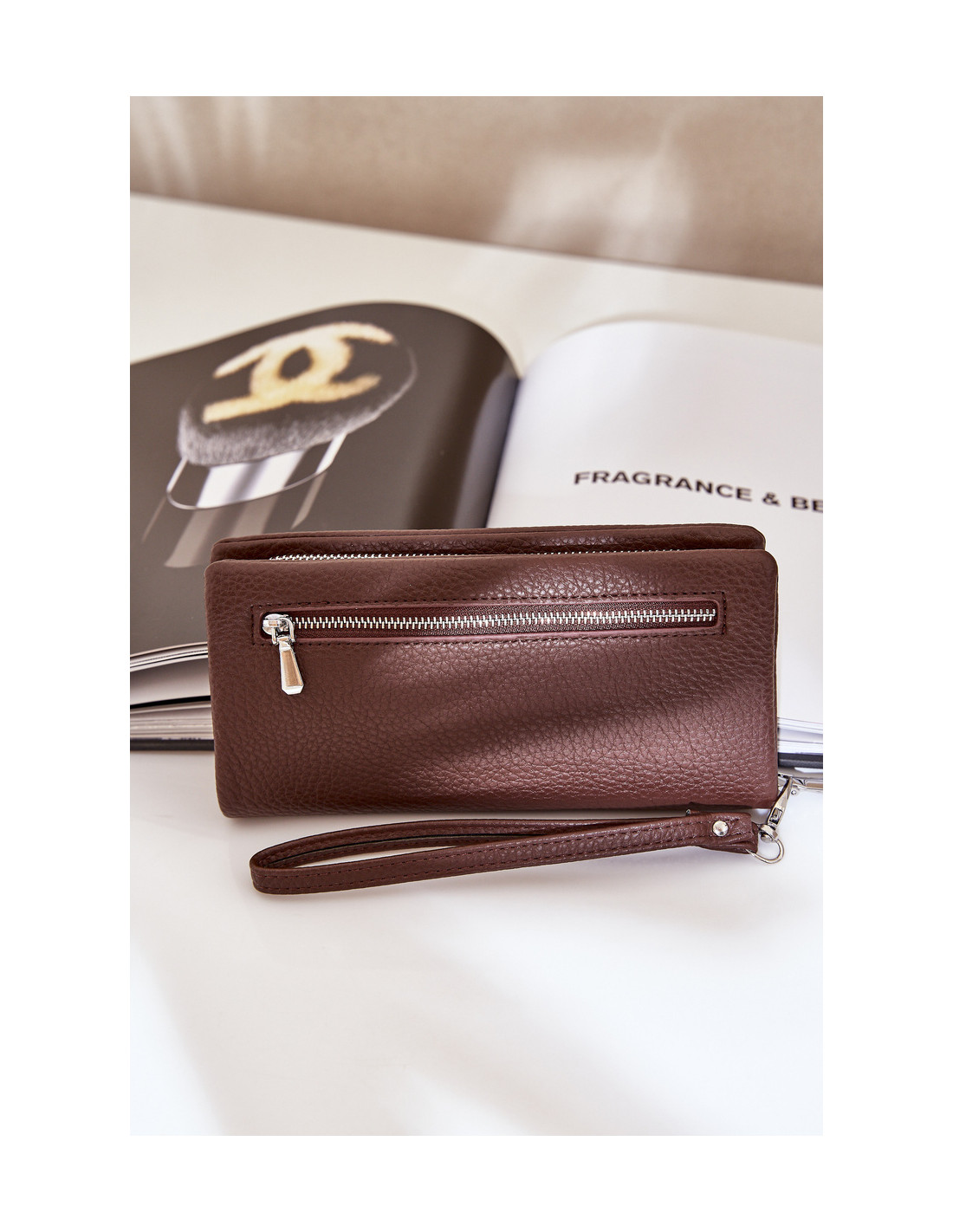 Didelė moteriška piniginė su įspaudu Eco Leather Chocolate Martiel