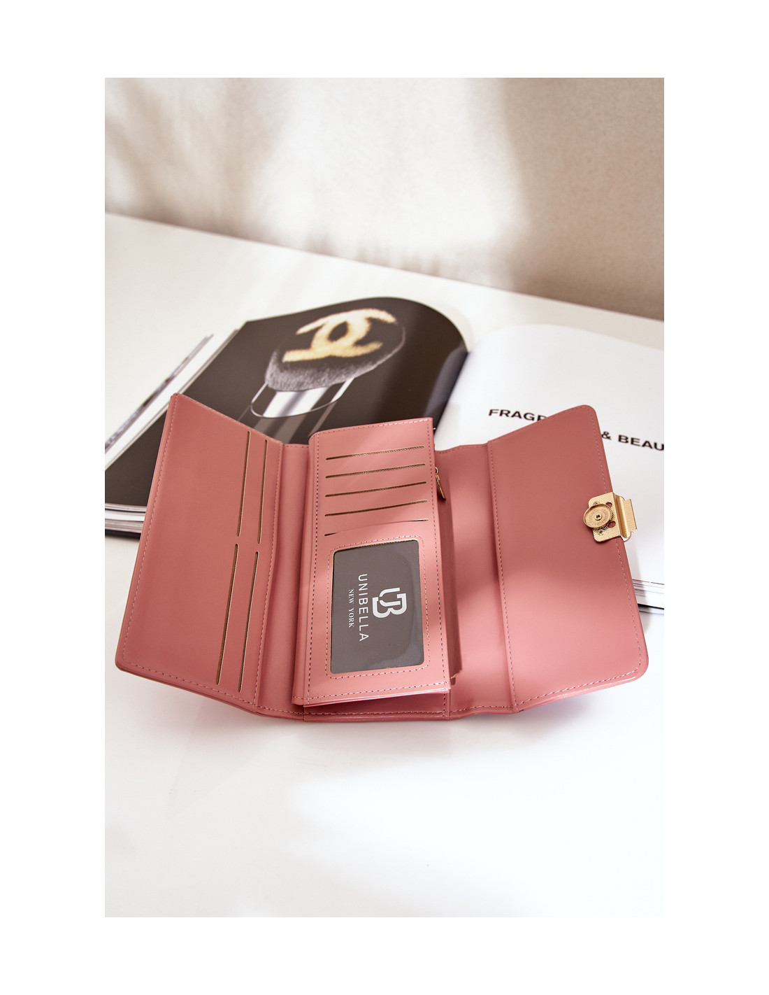 Stilinga moteriška piniginė iš eko odos, užsegama magnetuku. Viduje yra kišenė monetoms, kortelių skyriai, vieta banknotams ir nuotraukai. Elegantiškas ir funkcionalus, puikiai tinka kasdieniam naudojimui ir kaip dovana mylimam žmogui!