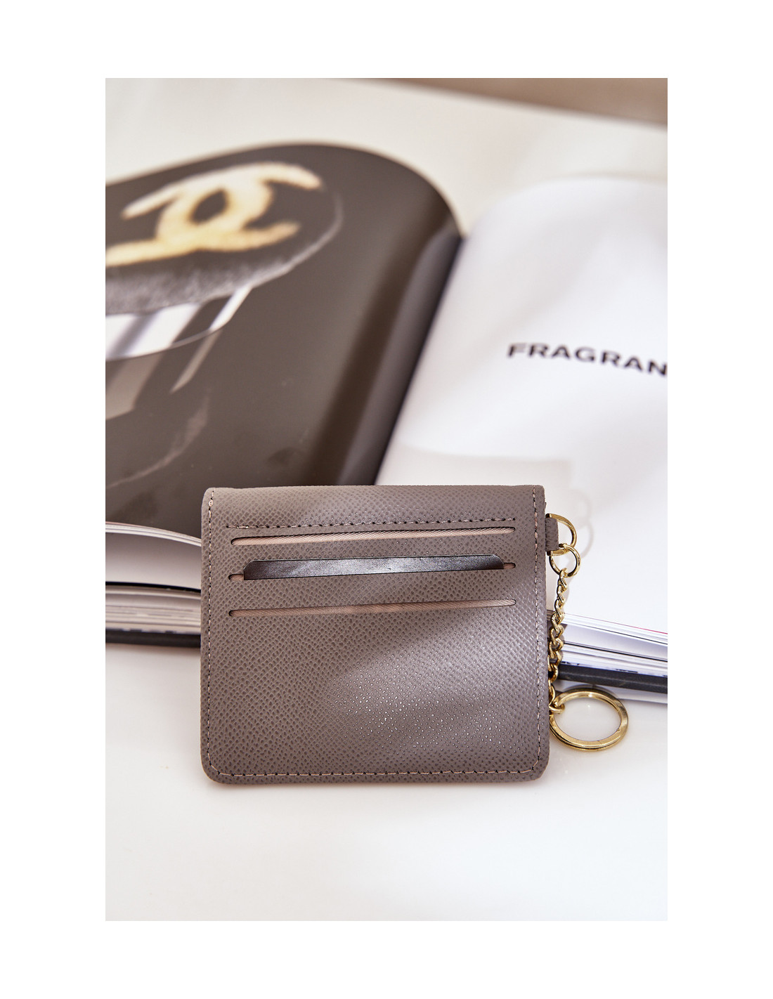 Kortelės dėklas su auksiniu raktų pakabuku Eco Leather Grey Iritinme