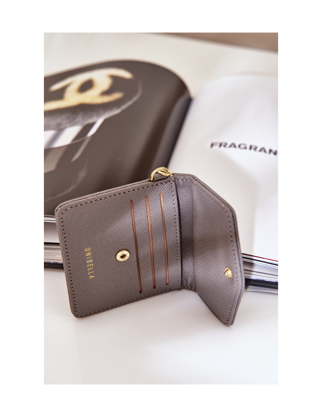 Praktiškas ir elegantiškas kortelių dėklas, pagamintas iš eko odos. Užsegamas spaustuku, užtikrina patogų ir saugų laikymą. Papildomas privalumas – dekoratyvinis auksinis raktų pakabukas. Stilingas ir funkcionalus aksesuaras, puikiai tinkantis kasdieniam naudojimui.
