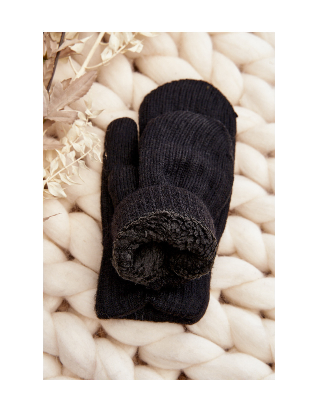 Moteriškos pirštinės su vienu pirštu. Tinkamo storio medžiaga puikiai dera su žema temperatūra, suteikdama šilumą ir maloniai apvyniodama rankas. Apšiltintas kailiu viduje. Šis modelis puikiai papildys žiemos stilių!