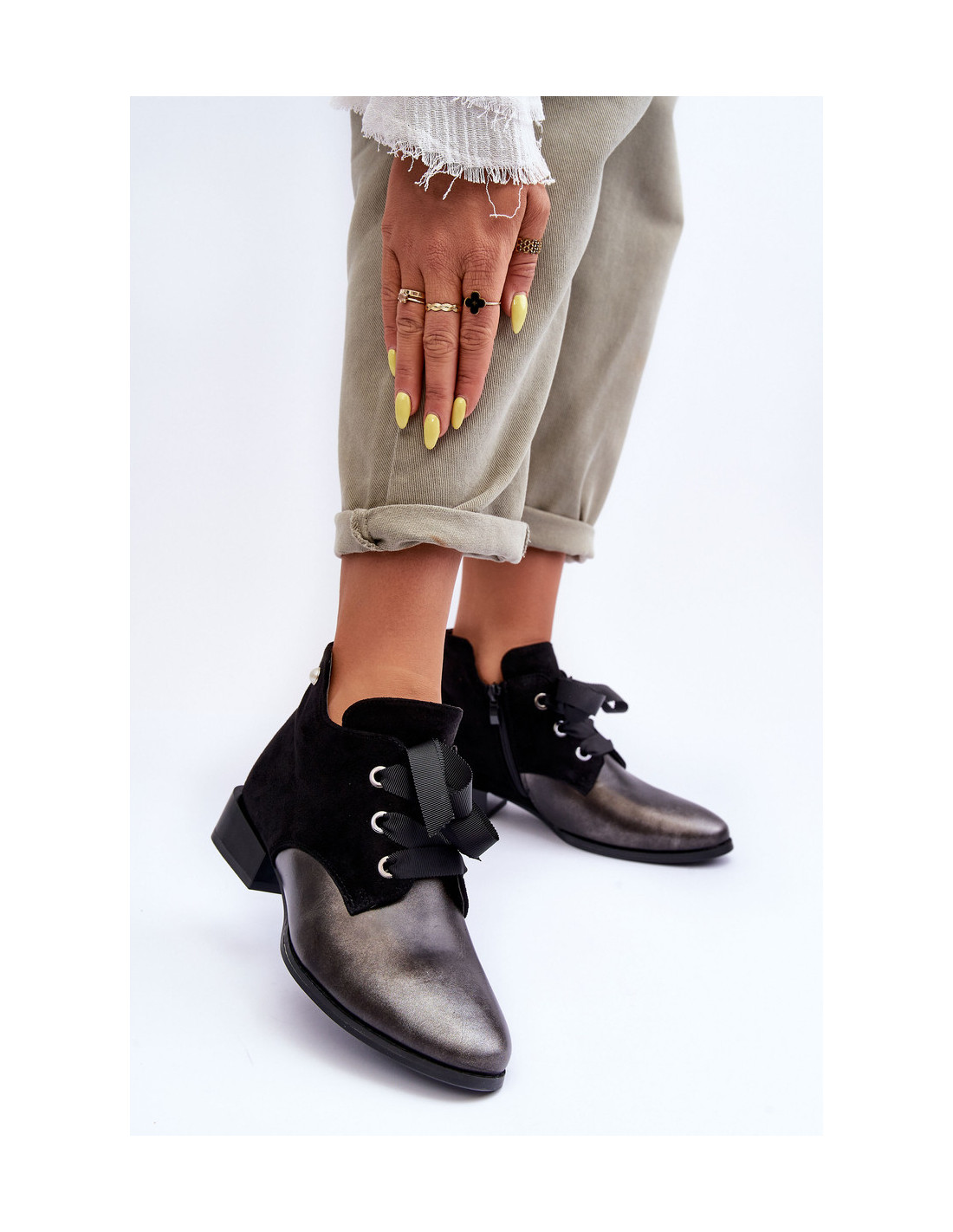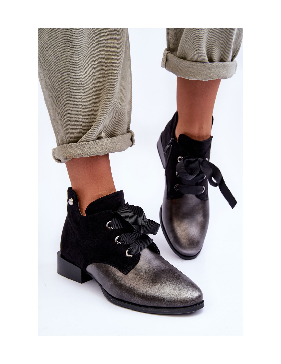 Madingi moteriški kulkšnies batai buvo pagaminti iš ekologiškos odos. Šis madingas šone užsegamas užtrauktuku ir papildomai suvarstomas. Statomas ant plokščio, stabilaus kulno. Vidus apšiltintas batų kilimėliu. Kojos pirštas standus. Renkantis dydį, vadovaukitės dydžių lentele.
