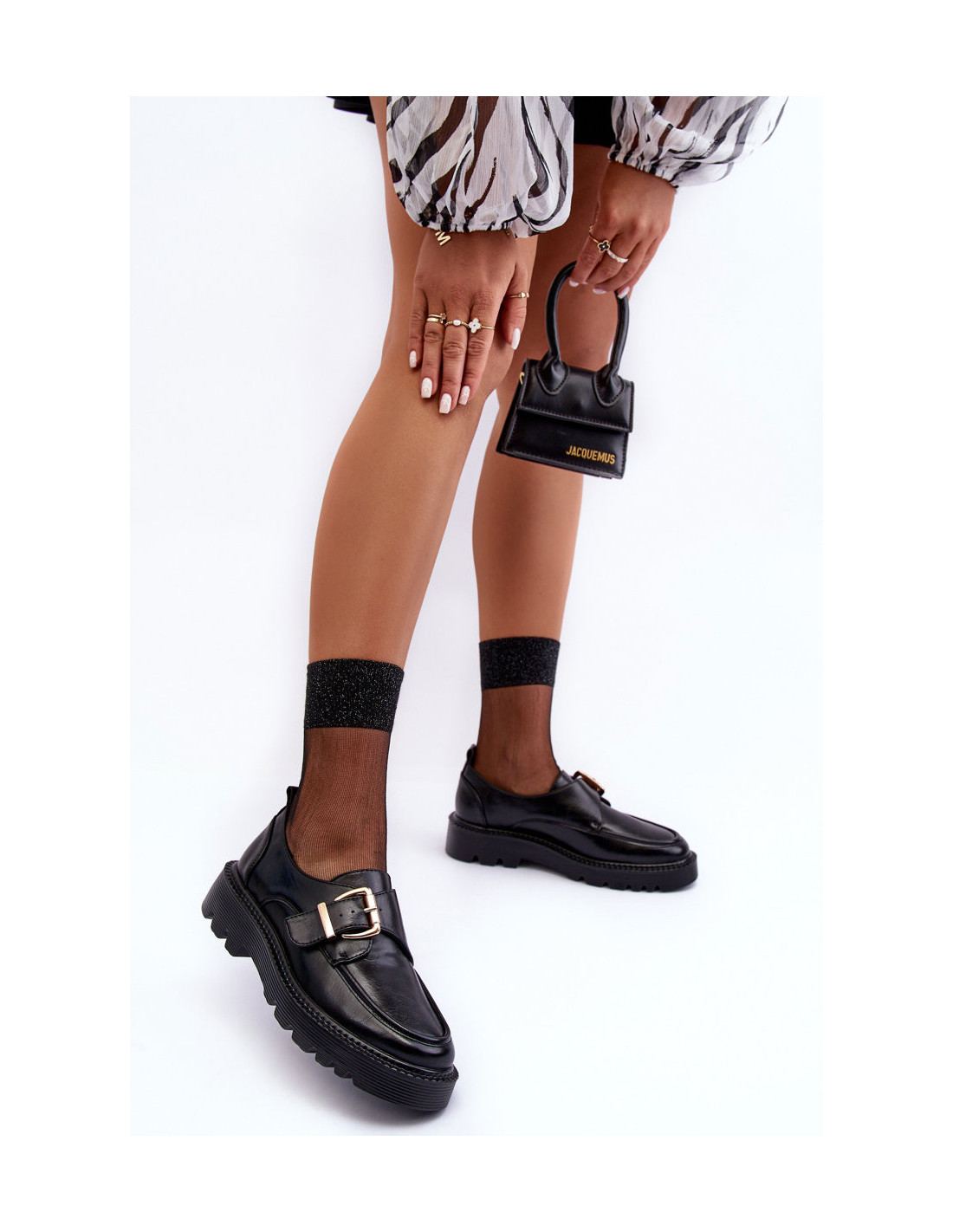 Elegantiški moteriški batukai, pagaminti iš ekologiškos odos. Nustatykite ant plokščio kulno ir platformos. Pirštai suapvalinti. Viršus puoštas dirželiu su auksine sagtimi. Kojos pirštas sustingęs. Minkštas eko odos vidpadis užtikrins patogų naudojimą. Šie batai tiks daugybe stilizacijų! Būtinai peržiūrėkite visą mūsų loaferių kolekciją! Rinkdamiesi dydį, žiūrėkite dydžių lentelę.