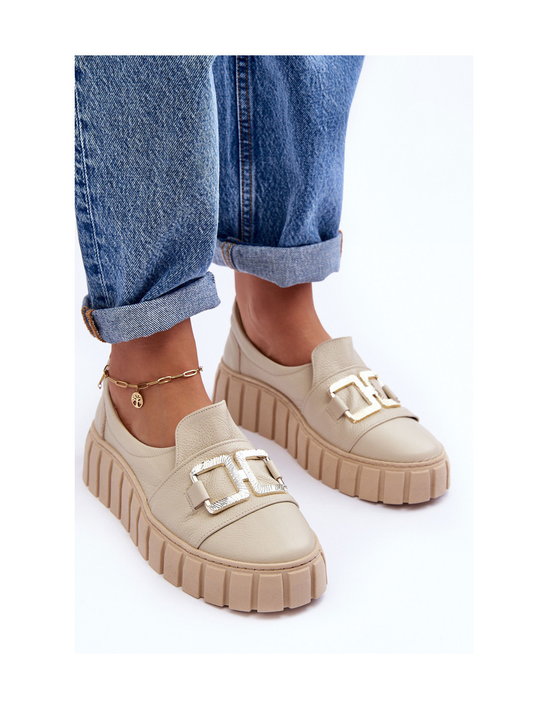 Moteriški odiniai pusbačiai ant platformos Beige Lewski 3398