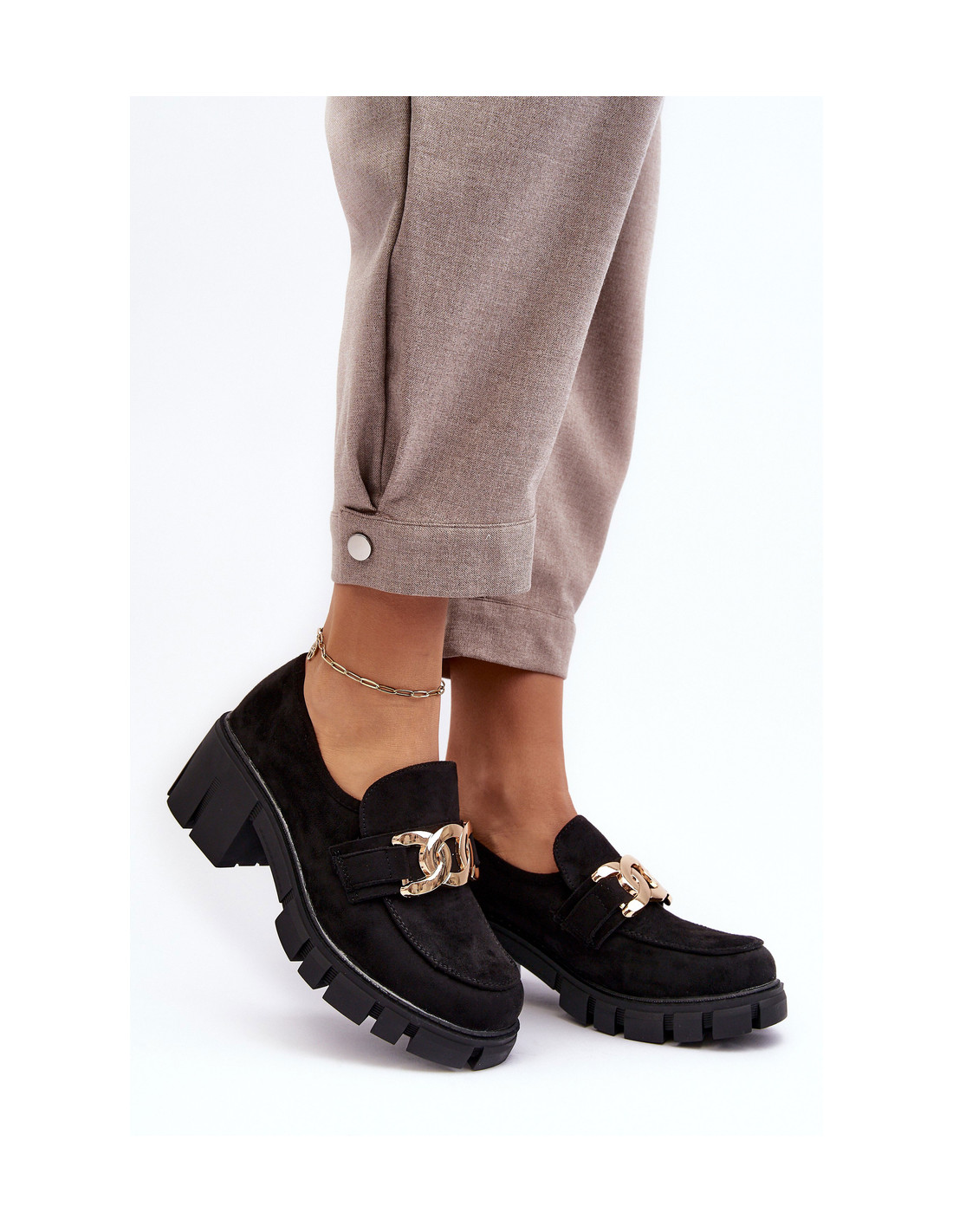 Zomšiniai moteriški batai su puošmena, juodi rullenai