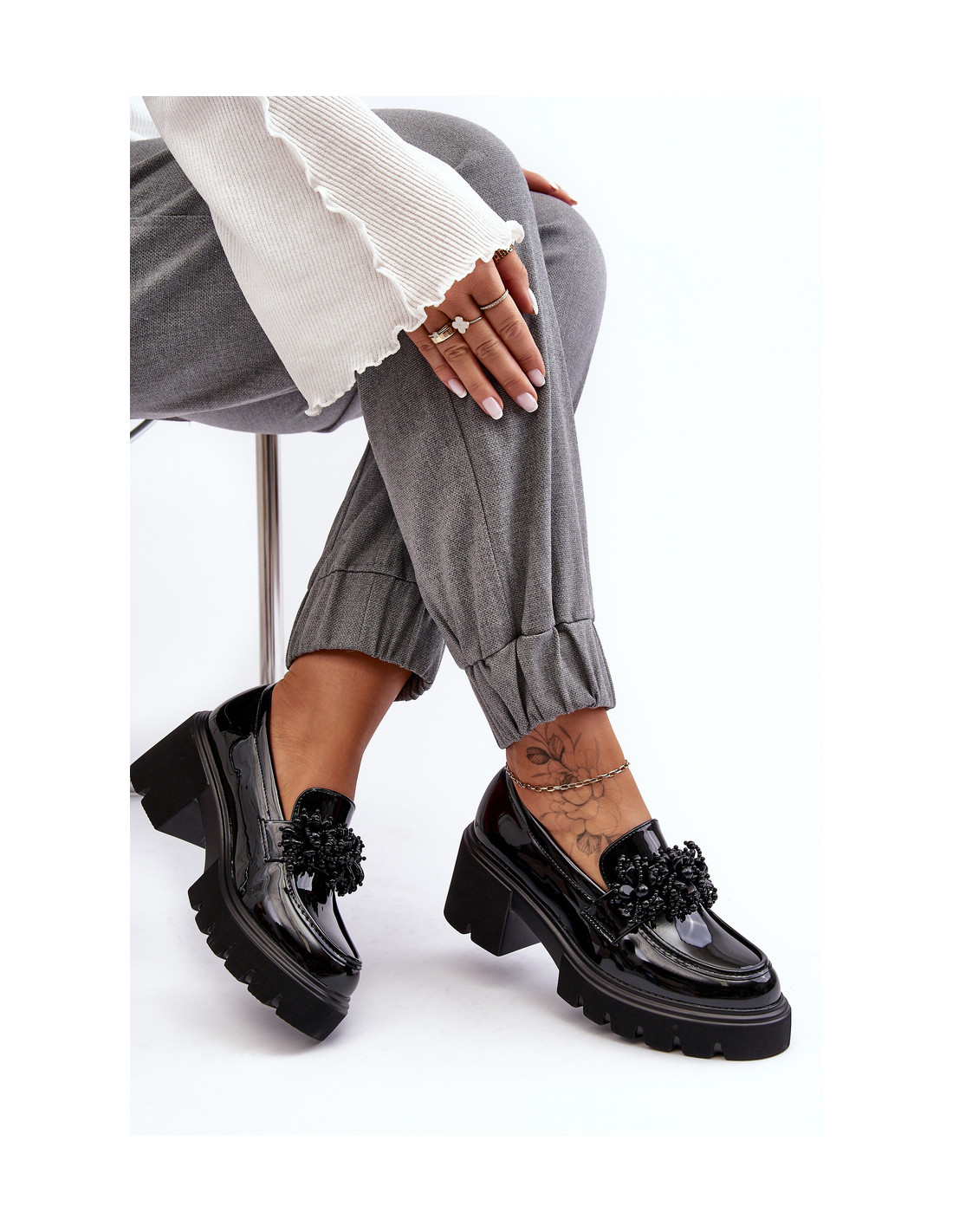 Moteriški lakinės odos batai su dekoracija Juoda Renesma