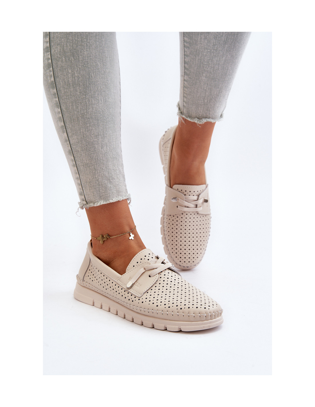 Elegantiški moteriški batai tikrai papildo bet kokį stilių. Pagaminti iš aukštos kokybės natūralios odos, jie ne tik atrodo stilingai, bet ir garantuoja ilgaamžiškumą bei patogumą dėvėti. Šis modelis turi gumines juostas, imituojančias batų raištelius. Minkštas vidpadis iš natūralios odos daro šiuos batus ne tik madingus, bet ir patogius. Renkantis dydį, vadovaukitės dydžių lentele.