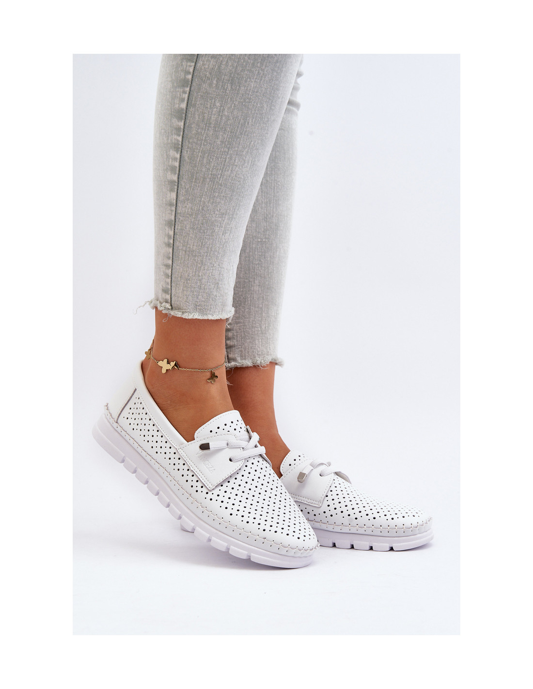 Moteriški ažūriniai odiniai batai, balta Darnissa