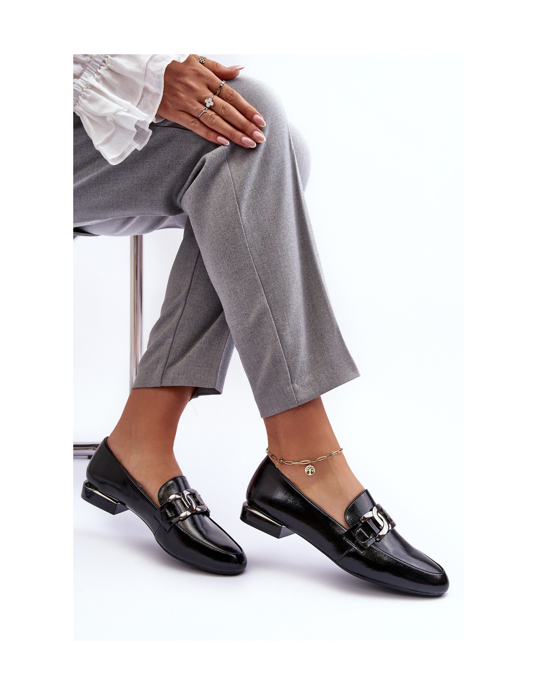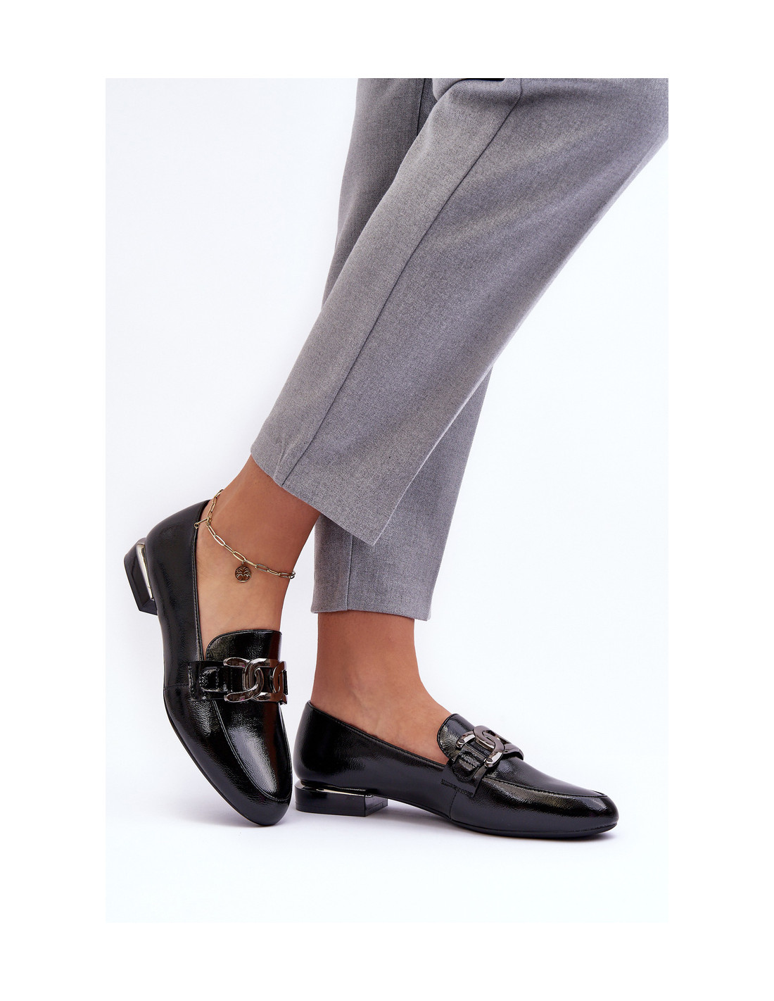 Moteriški lakinės odos mokasinai su puošmena, juoda Camilena