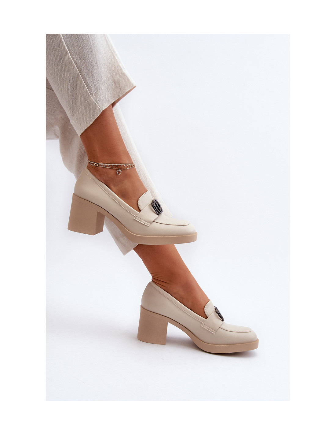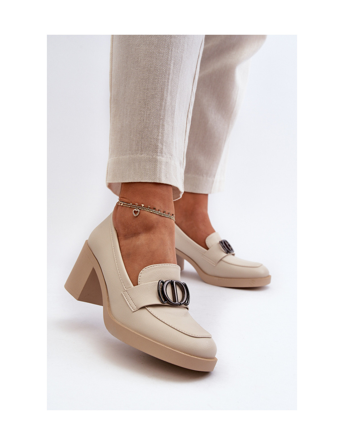 Moteriški aukštakulniai batai su puošmena, smėlio spalvos Nedarea