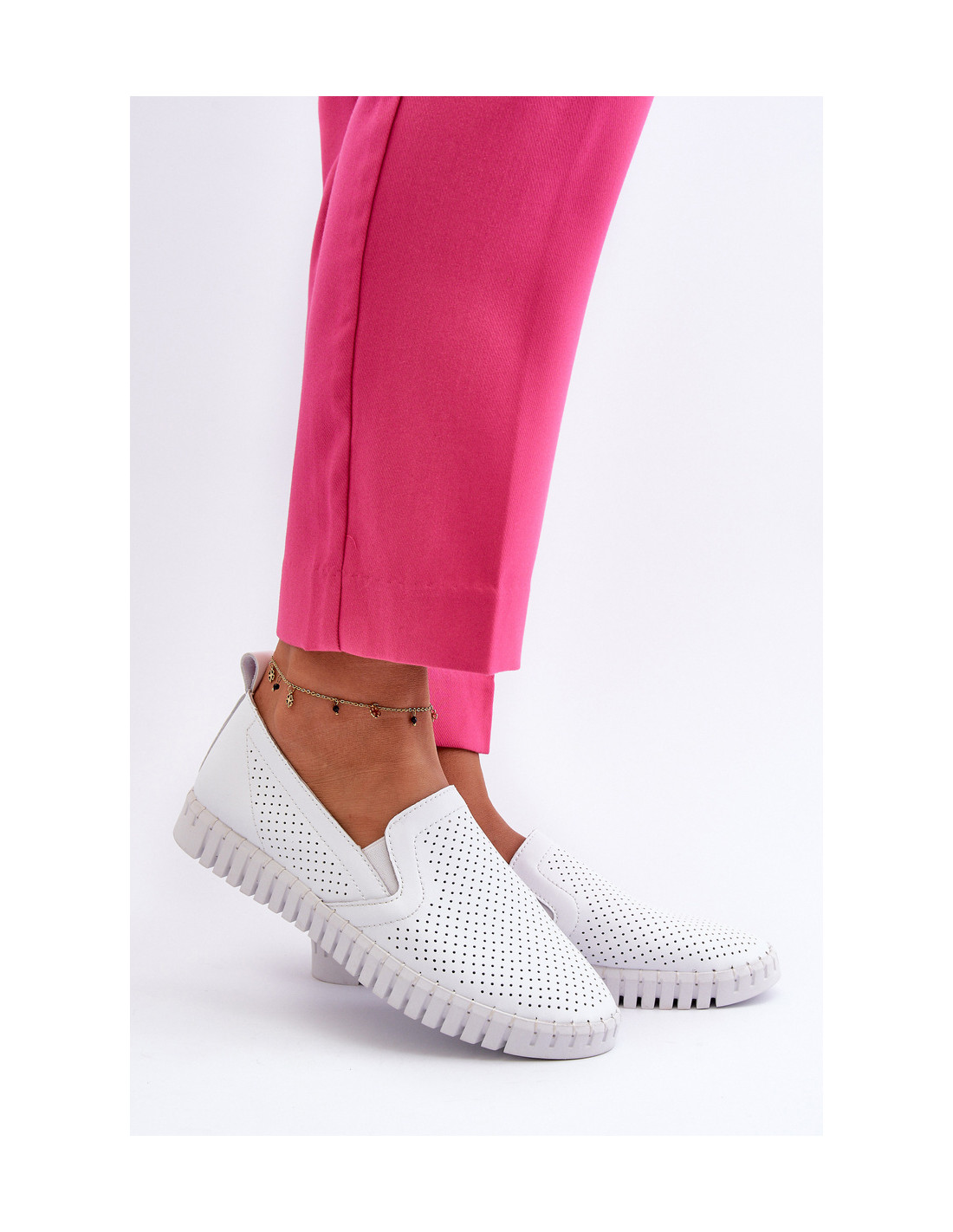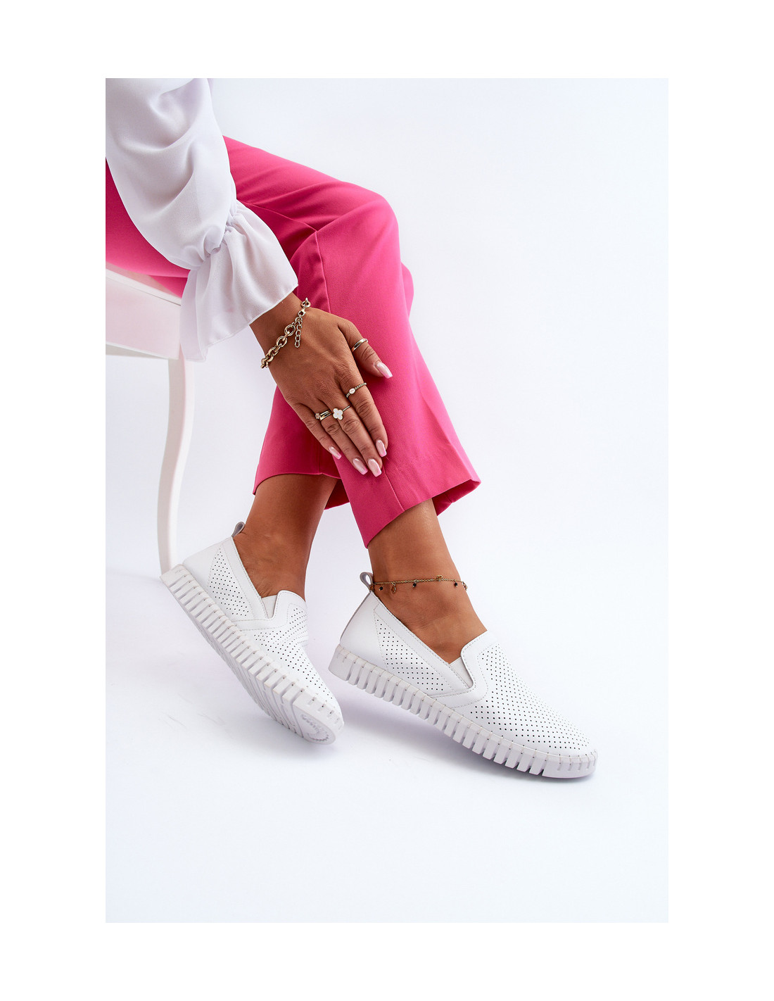 Moteriški ažūriniai odiniai užsegami batai, balta Theophia