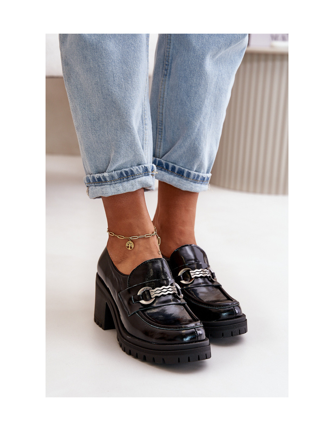 Zazoo 20175 moteriški lakinės odos batai ant aukšto kulno, natūrali oda, juodi