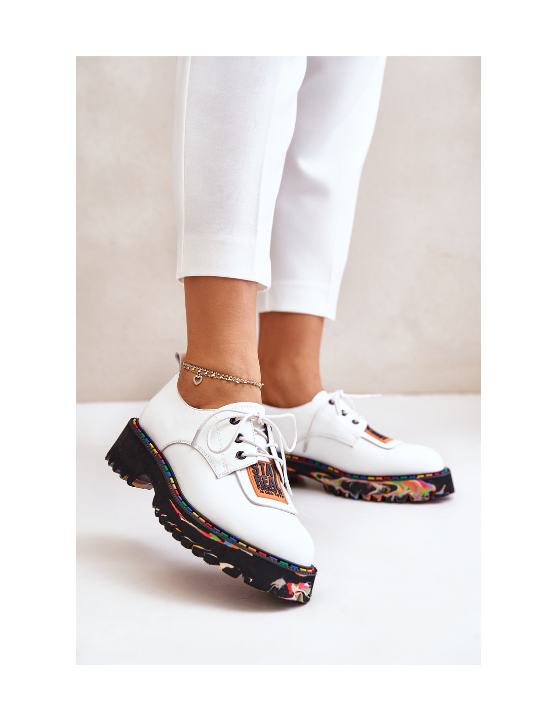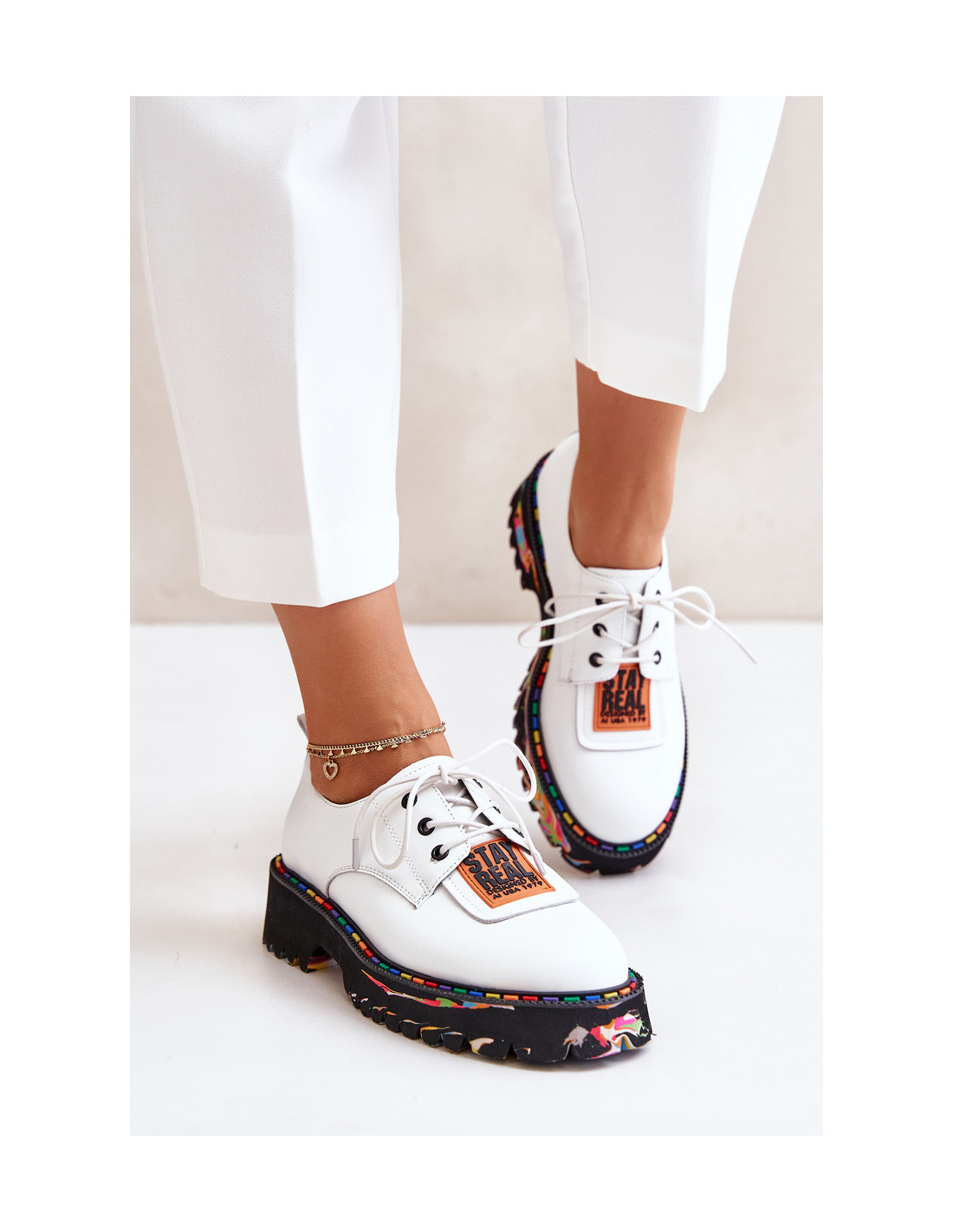 Moteriški batai iš natūralios odos, kuriuose dera elegancija ir patogumas. Ant platformos ir plokščio kulno jie užtikrina patogumą dėvėti visą dieną. Suapvalinti pirštai suteikia jiems klasikinę išvaizdą, o raišteliai puikiai priglunda prie pėdos. Dekoratyvinis užrašas ant liežuvio. Puikiai tinka įvairioms progoms, puikiai tinka kasdieniam stiliui. Renkantis dydį, vadovaukitės dydžių lentele.
