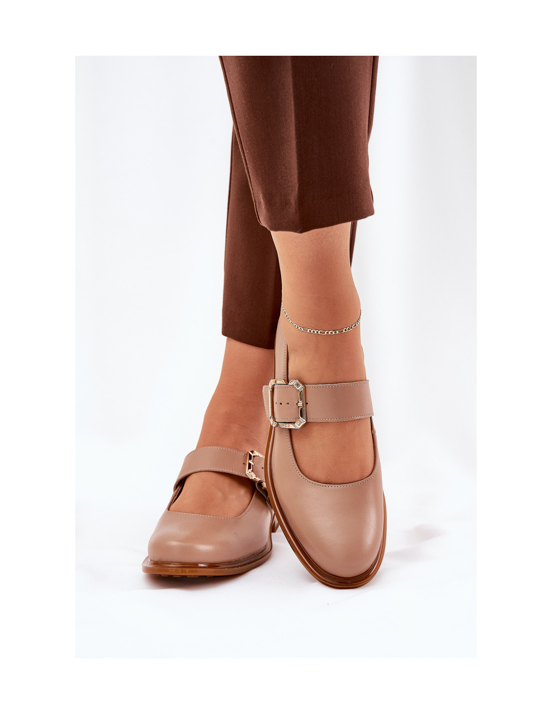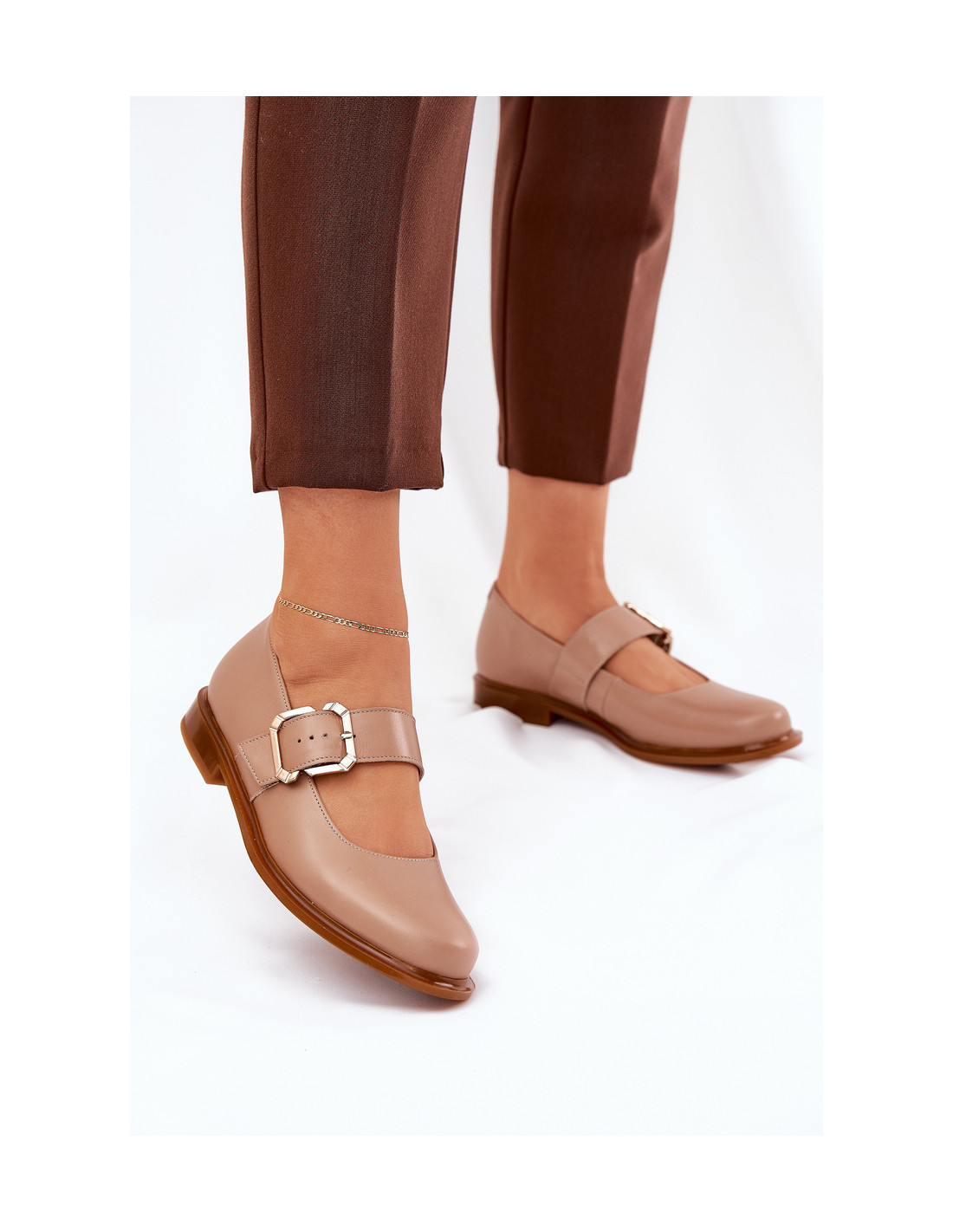 Laura Messi 2980 tamsiai smėlio spalvos moteriški žemi batai su sagtimi