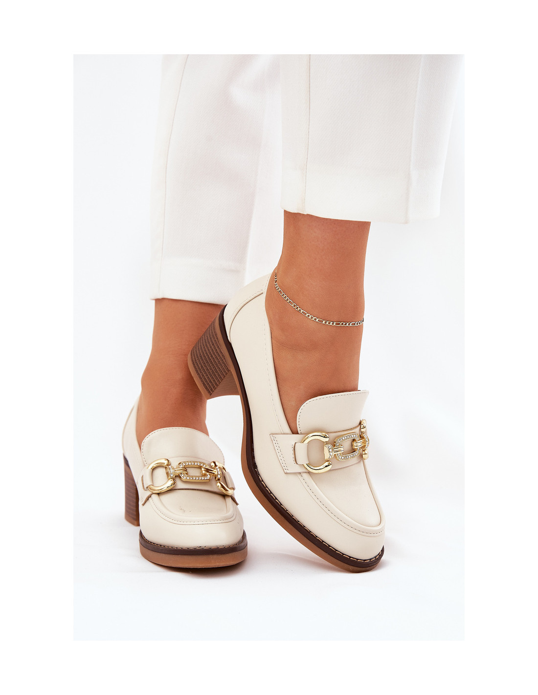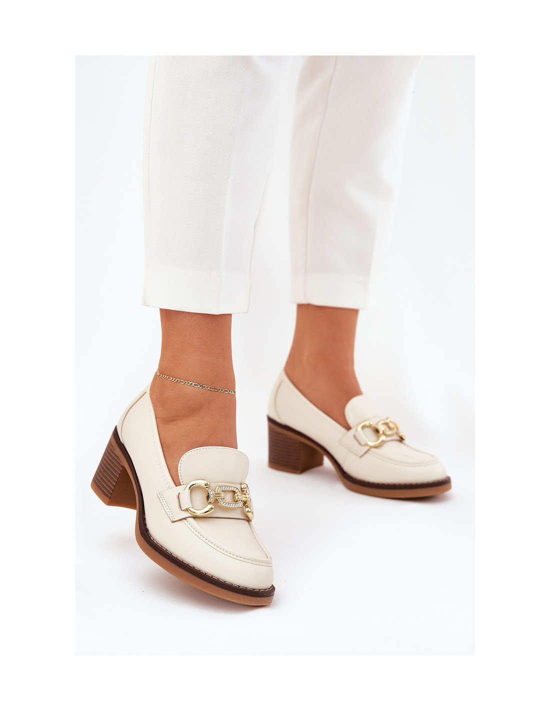 Elegantiški moteriški batai iš eko odos – puikus pasirinkimas įvairioms progoms. Jie pasižymi apvaliais pirštais ir aukso spalvos detalėmis. Nustatyti ant kulno blokinio kulno formos. Šie batai puikiai dera tiek prie oficialaus, tiek prie kasdieninio stiliaus. Puikiai tinka verslo susitikimams, biuro kelionėms ir įprastesnėms progoms, kai norite jaustis stilingai ir patogiai. Renkantis dydį, vadovaukitės dydžių lentele.