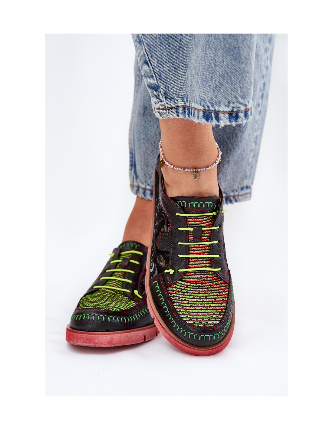 Originalaus stiliaus moteriški batai Maciejka. Pagaminti iš aukštos kokybės natūralios odos, jie pasižymi plačiais, užapvalintais pirštais, kurie suteikia komforto visą dieną. Raštuota viršutinė dalis suteikia išskirtinio charakterio, o užsegamas modelis su raištelius imituojančiomis gumytėmis daro batus praktiškus ir lengvai apsiauti. Šie batai yra puikus pasirinkimas žmonėms, vertinantiems unikalų stilių ir kasdienį patogumą. Renkantis dydį, vadovaukitės dydžių lentele.