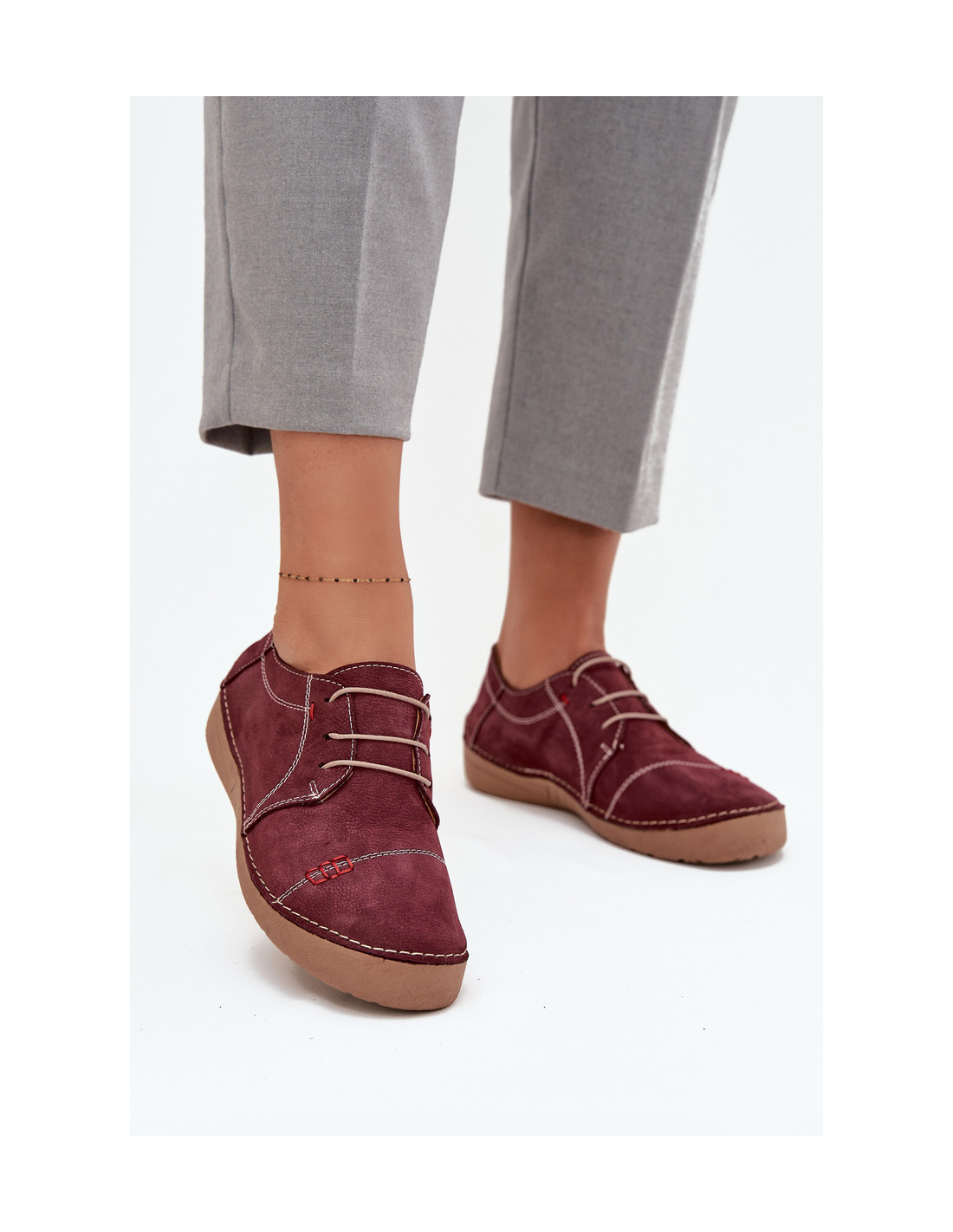 Artiker 57C2111 bordo spalvos odiniai moteriški žemakulniai bateliai su siūlėmis