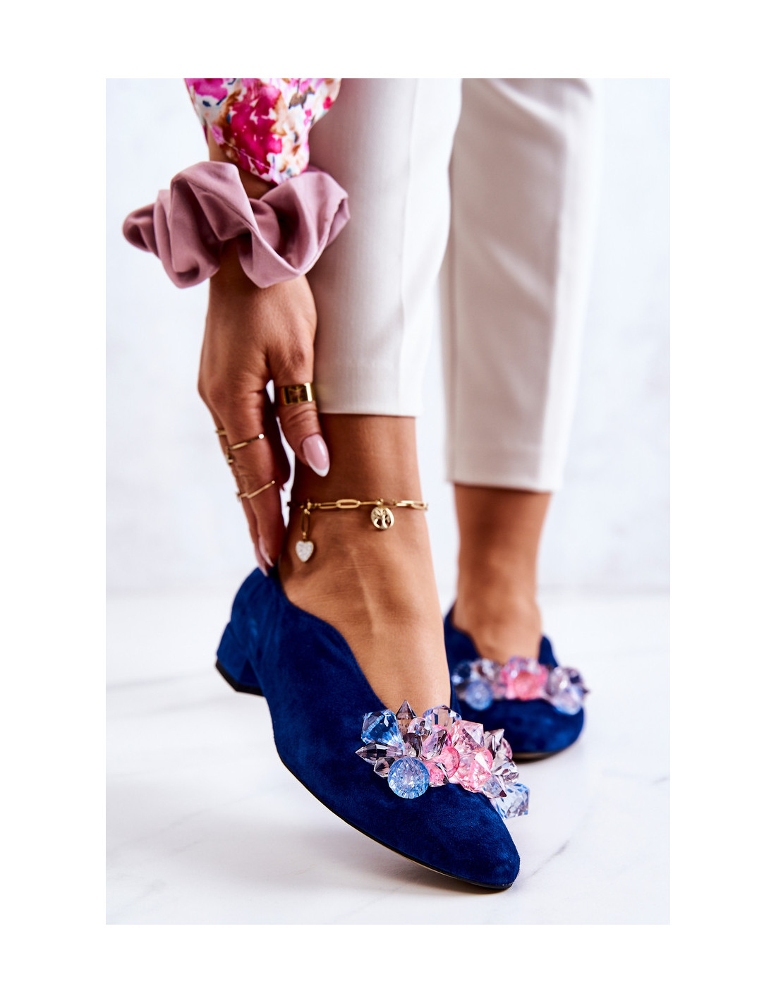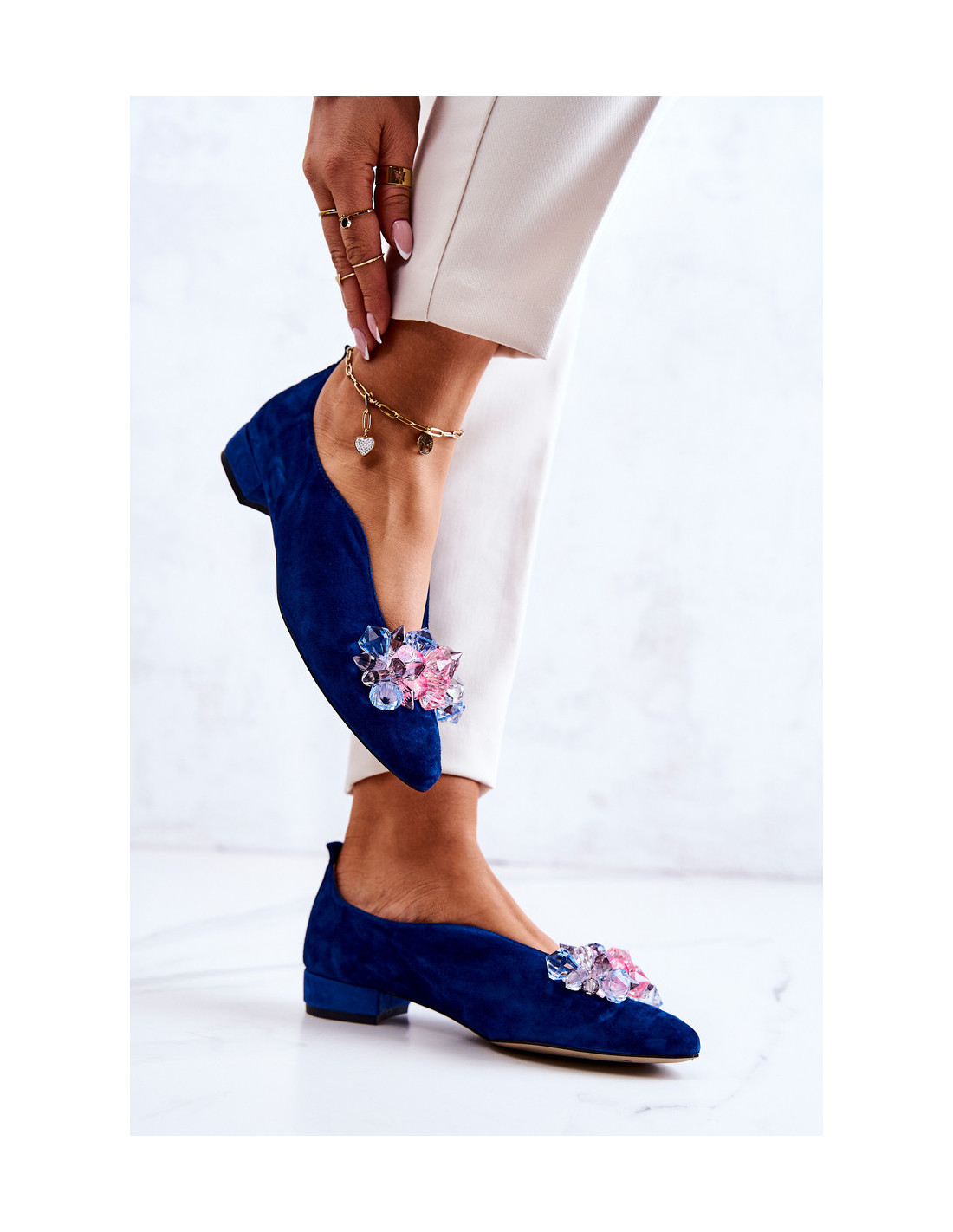 Elegantiški batai pagaminti iš natūralios zomšos odos. Smailus pirštas. Jų priekyje yra krištolinis ornamentas. Vidpadis pagamintas iš natūralios odos, kad būtų užtikrintas didžiausias patogumas naudojimo metu. Plokščias kulnas suteiks stabilumo. Batai elegantiški ir madingi. Šis modelis puikiai tiks elegantiškai stilizacijai, pvz., šeimos šventėms ar verslo susitikimams. Šis kirpimas pavogs daugelio mados naujienų gerbėjų širdį! Renkantis dydį, naudokite dydžių lentelę.