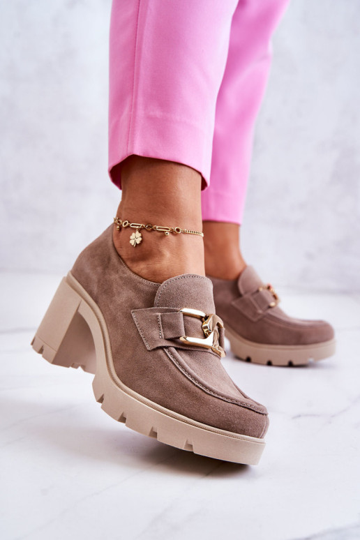 Elegantiški batai ant stulpo su auksine puošyba smėlio spalvos Harmell