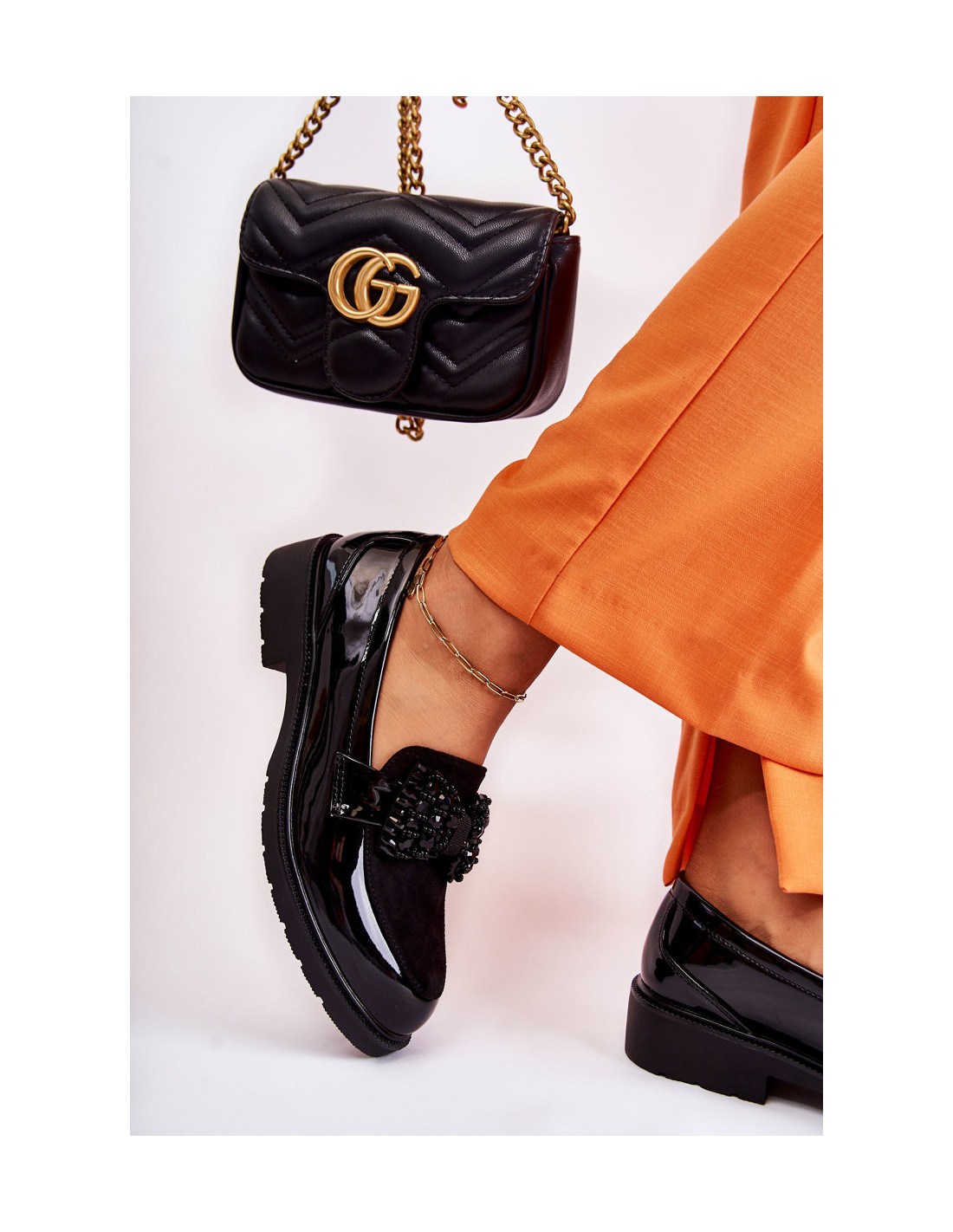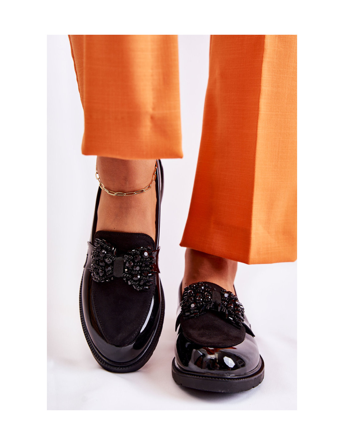 Elegantiškuose moteriškuose batuose prie diržo pritvirtintas dekoratyvinis lankelis su karoliukais. Batai yra pagaminti iš lakuotos eko odos, atkreipiant dėmesį į kiekvieną detalę, pridėjus ekologiškos zomšos. Nustatyti ant plokščio kulno su neslidžiu padu. Eko odos vidpadis užtikrins komfortą naudojimo metu. Jūs tikrai turėtumėte juos turėti! Renkantis dydį, naudokite dydžių lentelę.
