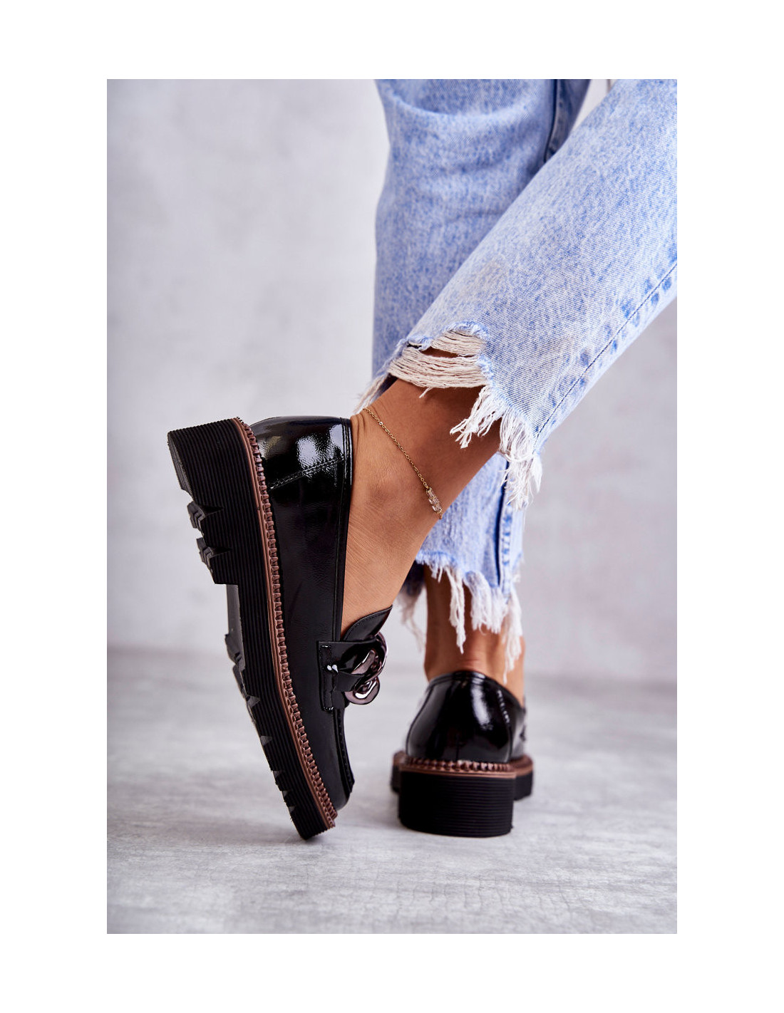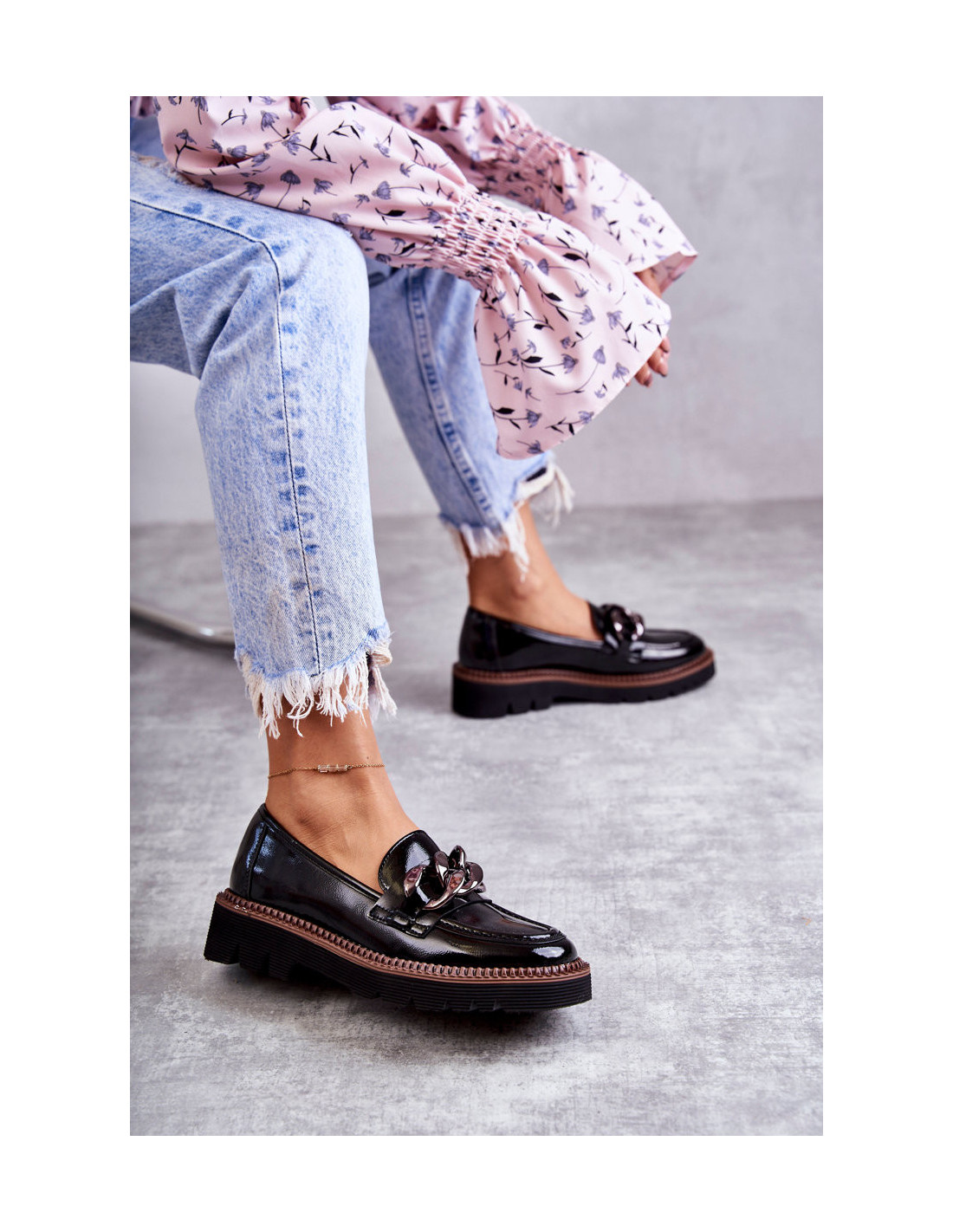 Klasikiniai batai yra puikus pasirinkimas darbo stiliui. Jie turi odinį vidpadį, kuris užtikrina komfortą ilgoms valandoms. Auksinė plastiko puošmena gražiai pabrėžia visumą. Batai turi masyvų padą su ryškiu grioveliu. Lakuota eko oda – praktiškas pasirinkimas kasdieniam naudojimui. Loafers yra batai, kurie turi būti jūsų drabužių spinta. Renkantis dydį, naudokite dydžių lentelę.
