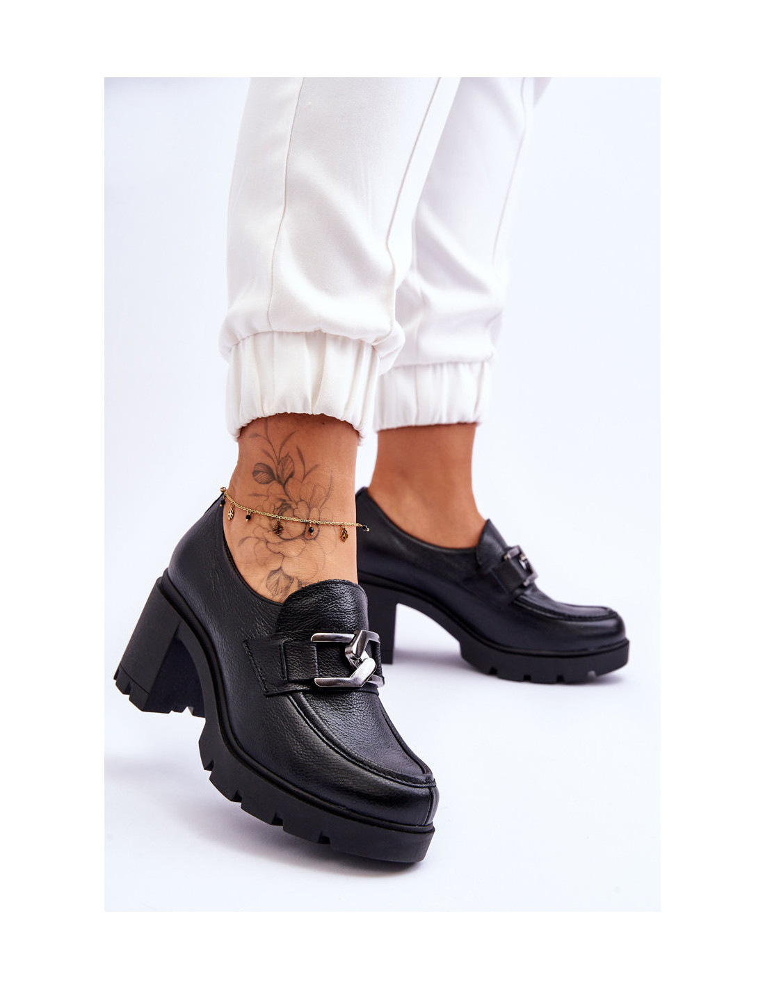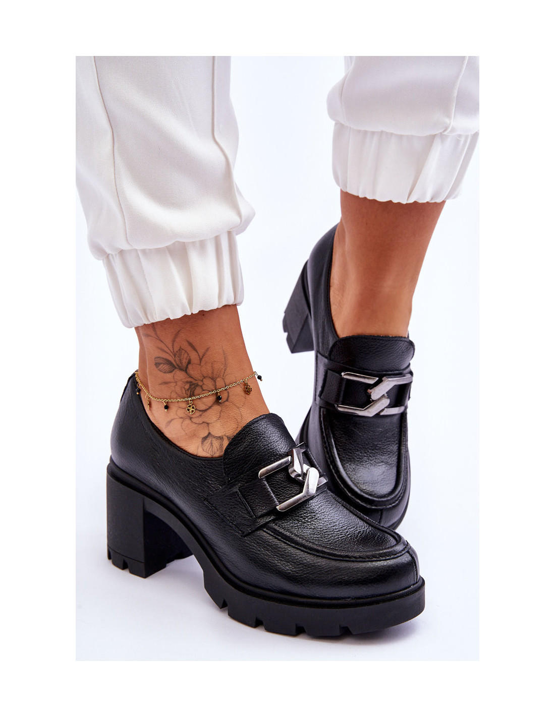 Nuostabūs aukštakulniai batai su batviršiais iš natūralios odos. Vidus padengtas natūralia oda ir tekstilės medžiaga, todėl jas labai patogu naudoti. Vidpadis pagamintas iš natūralios odos, o padas iš guminės medžiagos. Stilingas plataus stulpelio formos kulnas suteiks stabilumo kiekviename žingsnyje. Veidrodinis ornamentas priekyje. Kulno skaitiklis yra standus. Be to, po liežuviu yra elastinė juosta, dėl kurios batas puikiai priglus prie pėdos. Renkantis dydį, naudokite dydžių lentelę.