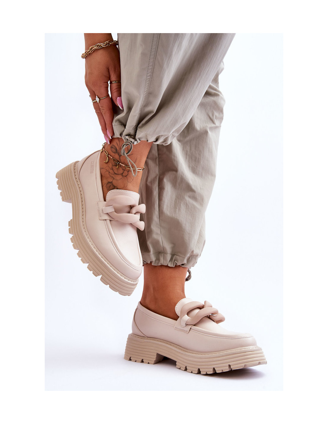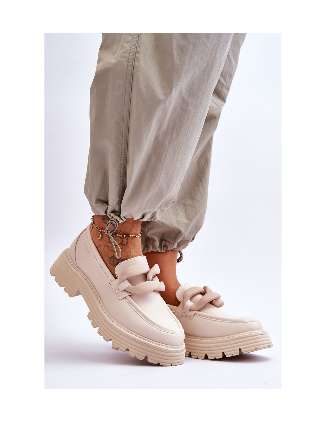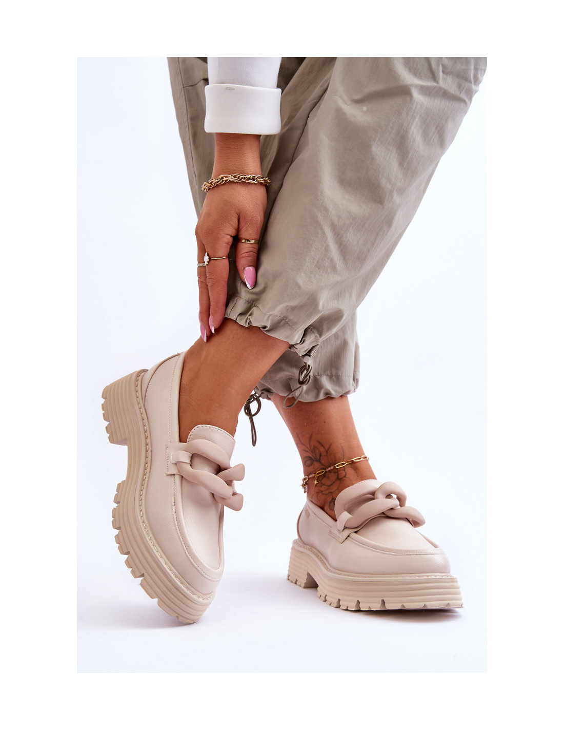 Madingi batai – batukai pagaminti iš ekologiškos odos. Nustatykite ant platformos ir plokščių kulnų. Mokasinų priekyje yra dekoratyvinė grandinėlė. Eko odos vidpadis užtikrins patogų avalynės naudojimą. Be to, šių batų kulnų skaitiklis yra standesnis. Rinkdamiesi dydį žiūrėkite dydžių lentelę.
