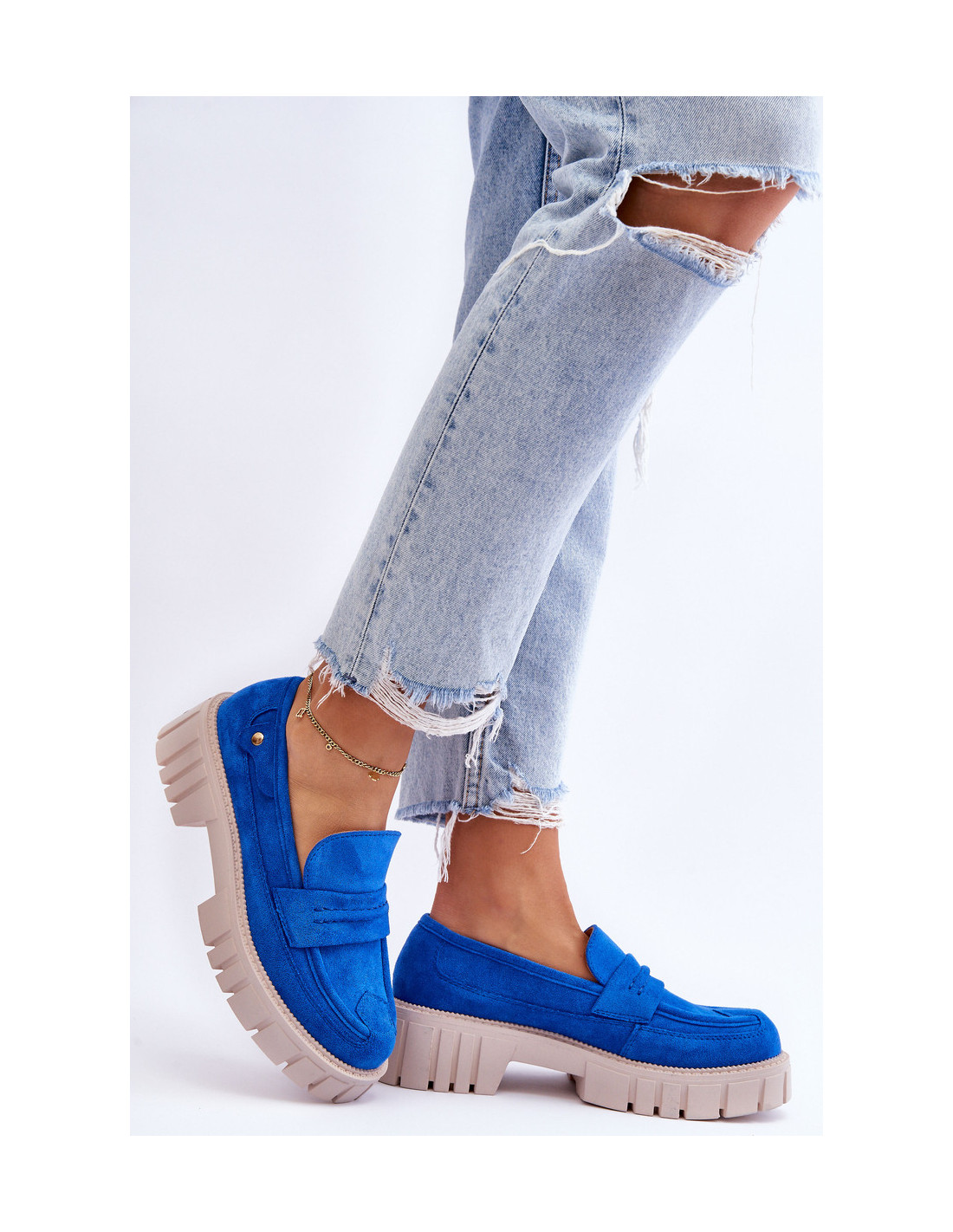 Puikūs „loafer“ stiliaus batai, pagaminti iš aukštos kokybės ekologiškos odos su apvadais. Būdinga puošmena – juostelė priekyje ir kniedė šone. Jie turi masyvią platformą ir plokščią kulną. Minkštas vidpadis iš eko odos užtikrins komfortą naudojant avalynę. Be to, kulnas standinamas. Rinkdamiesi dydį žiūrėkite dydžių lentelę.