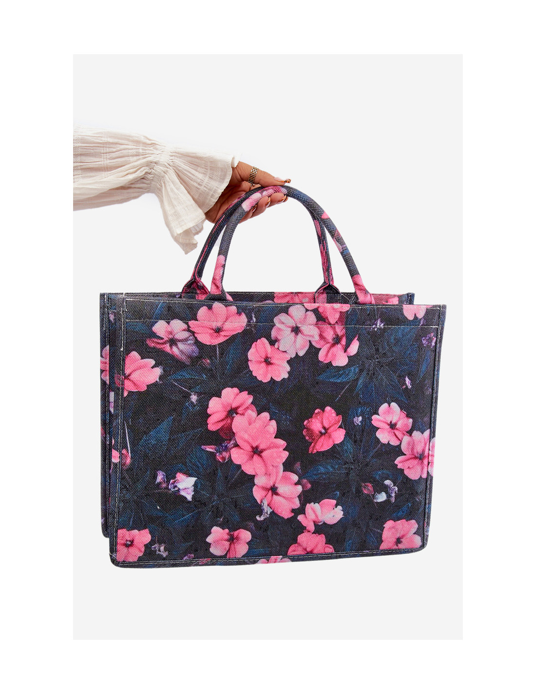 Sutvirtintas, gražiu raštu dekoruotas krepšys, puikiai tinkantis prie vasaros stiliaus. Pagrindinis skyrius užsegamas užtrauktuku. Krepšys turi nuimamą, reguliuojamą dirželį. Viduje dvi mažesnės atviros kišenės ir viena didesnė su elastine juostele. Būtinai praturtinkite savo vasaros stilių madinga rankine!