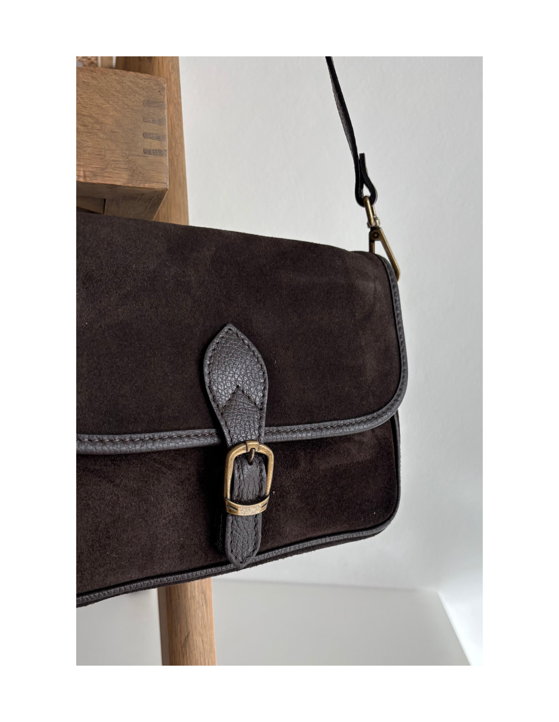 Šis krepšys per petį, pagamintas iš tikros zomšos, yra elegantiškas ir nesenstantis aksesuaras, puikiai tinkantis kasdieniam nešiojimui ir ypatingoms progoms. Jis turi magnetinį užsegimą ant atvarto ir užtrauktuką viduje patogiam ir saugiam laikymui. Viduje yra dvi praktiškos kišenės, kad būtų lengva susidėti būtiniausius daiktus. Nuimamas, fiksuotas dirželis leidžia nešioti jį ant peties arba rankoje. Šis stilingas drabužis papildys tiek elegantišką, tiek laisvalaikio aprangą.
