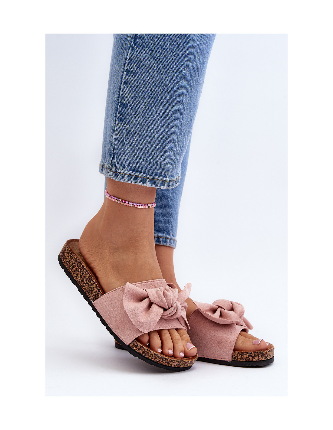 Gražūs šlepetės kamštiniu padu. Batai turi profiliuotą vidpadį, kuris garantuoja maksimalų komfortą. Viršutinė dalis pagaminta iš malonios liesti ekologiškos zomšos. Dekoratyvinis lankelis priekyje. Puikiai tinka kasdieniam naudojimui! Šis modelis yra įvairių spalvų. Jūs tikrai turėtumėte juos turėti! Renkantis dydį, vadovaukitės dydžių lentele.