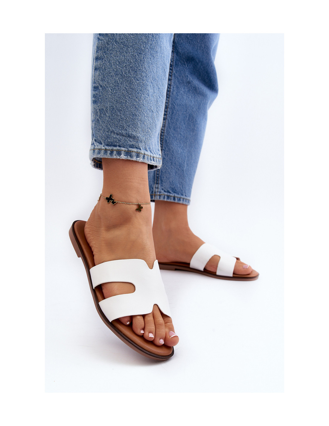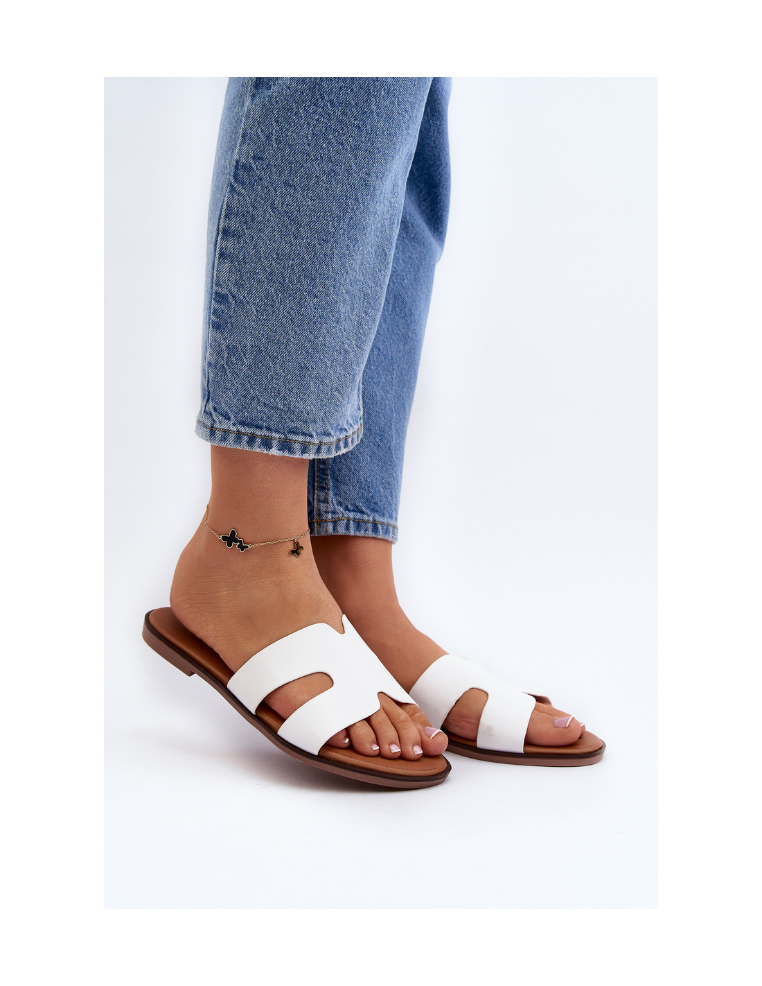 Šlepetės – idealus pasirinkimas ieškantiems universalios vasarinės avalynės. Pagaminta iš eko odos. Plokščias kulnas garantuoja komfortą dėvint, o tai ypač svarbu vasaros pasivaikščiojimams ar išeinant į lauką. Dėl klasikinio kirpimo jie puikiai tinka įvairiems vasaros stiliams! Renkantis dydį, vadovaukitės dydžių lentele.