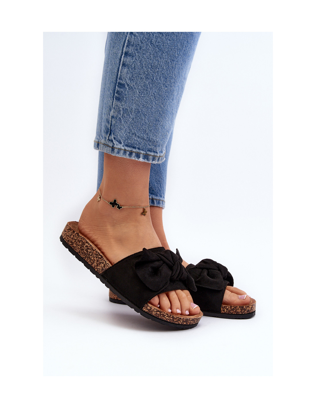 Gražūs šlepetės kamštiniu padu. Batai turi profiliuotą vidpadį, kuris garantuoja maksimalų komfortą. Viršutinė dalis pagaminta iš malonios liesti ekologiškos zomšos. Dekoratyvinis lankelis priekyje. Puikiai tinka kasdieniam naudojimui! Šis modelis yra įvairių spalvų. Jūs tikrai turėtumėte juos turėti! Renkantis dydį, vadovaukitės dydžių lentele.
