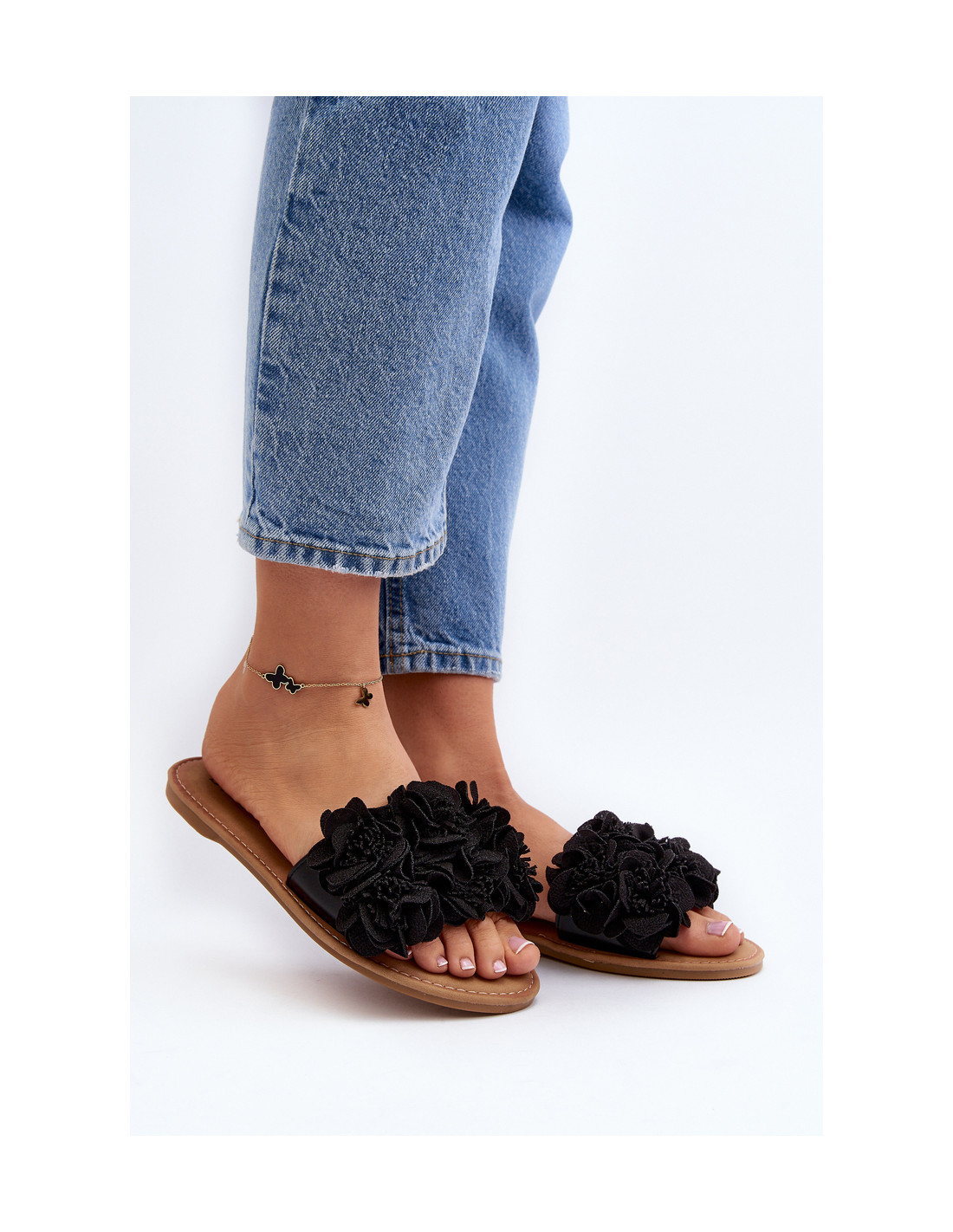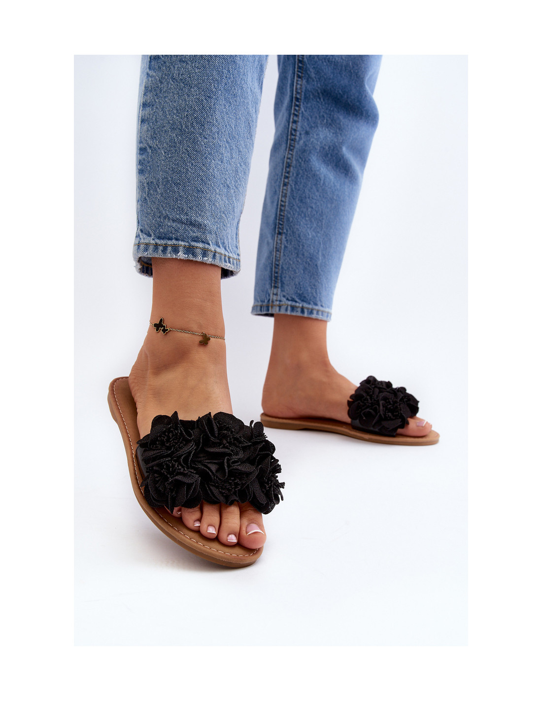 Moteriškos gėlių šlepetės, juodos Eelfan