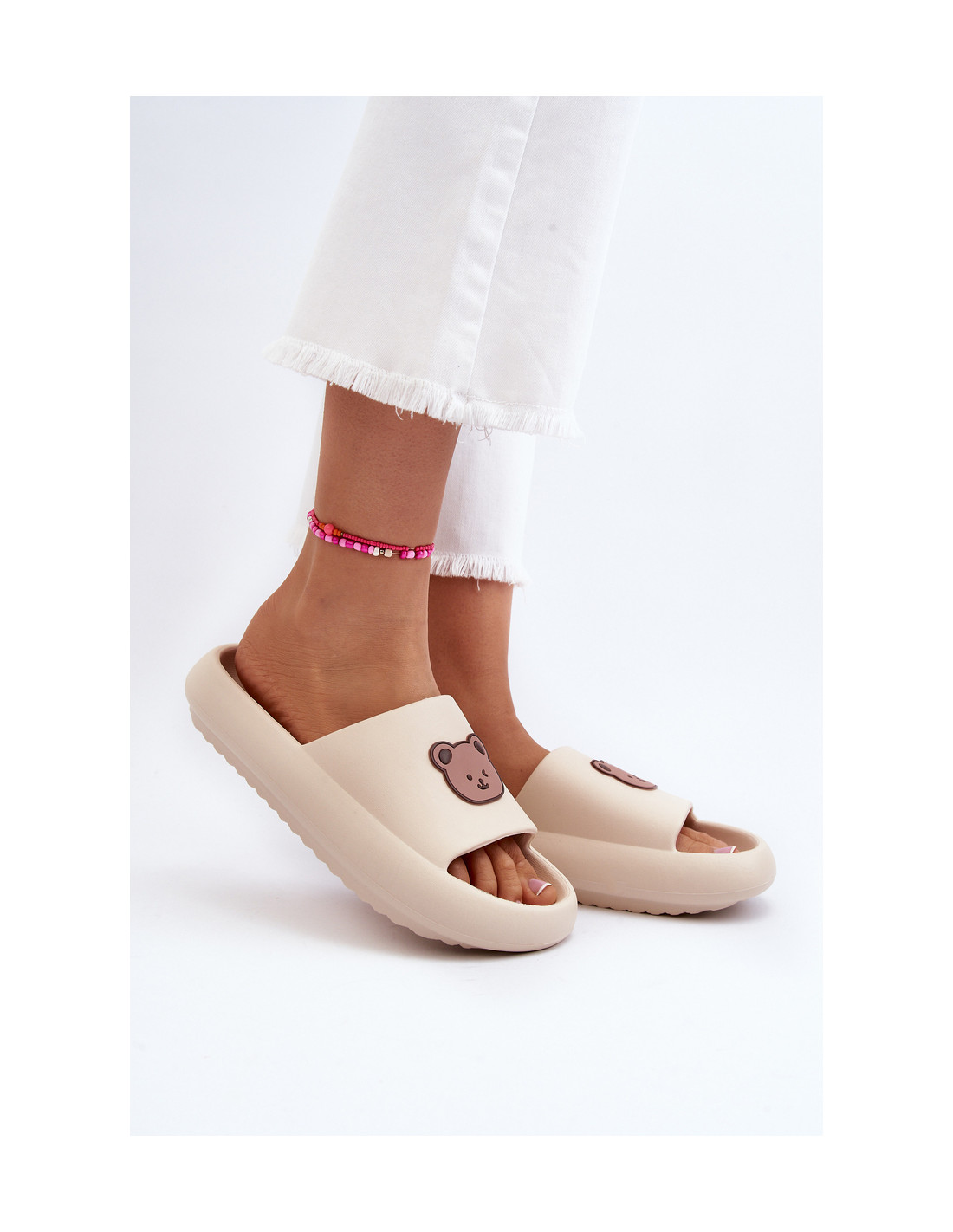 Lengvi moteriški putplasčio šlepetės su meškiuku, šviesiai smėlio spalvos Lia
