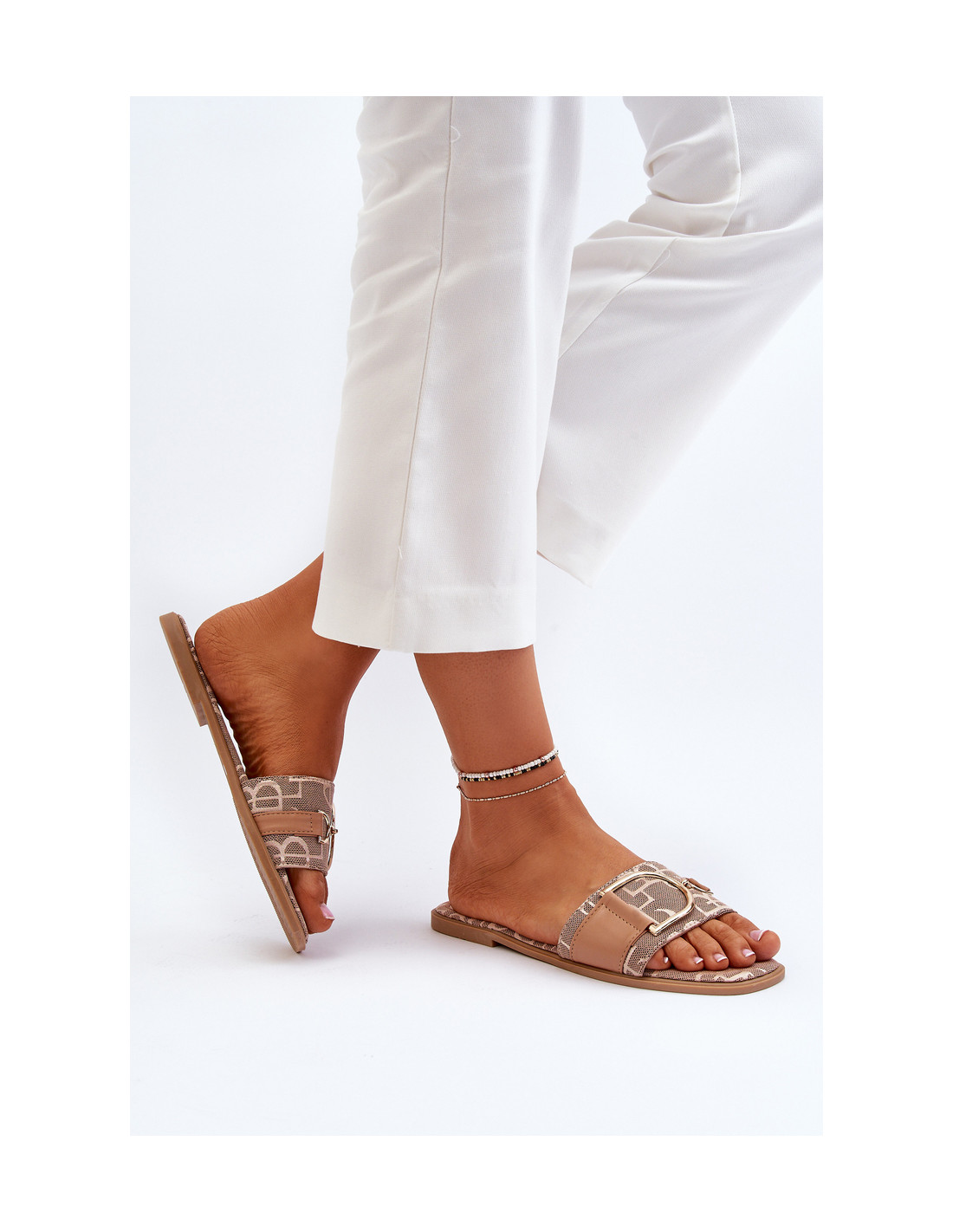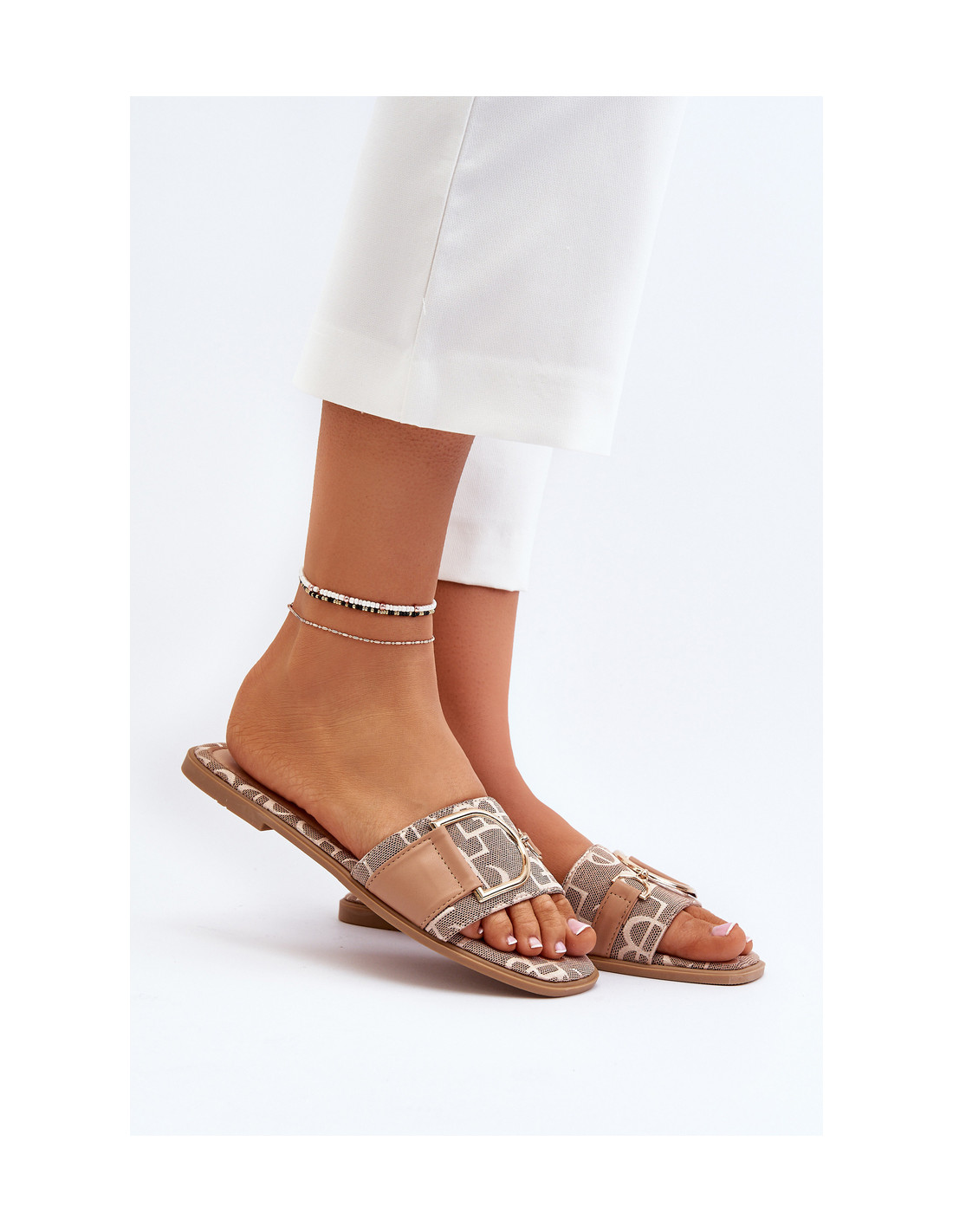 Moteriškos plokščios šlepetės – puikus pasirinkimas karštoms dienoms! Dekoruota auksine detale, kuri suteikia elegancijos. Jie puikiai dera prie įvairių stilių ir yra universalus garderobo elementas. Jūs privalote juos turėti! Renkantis dydį, vadovaukitės dydžių lentele.