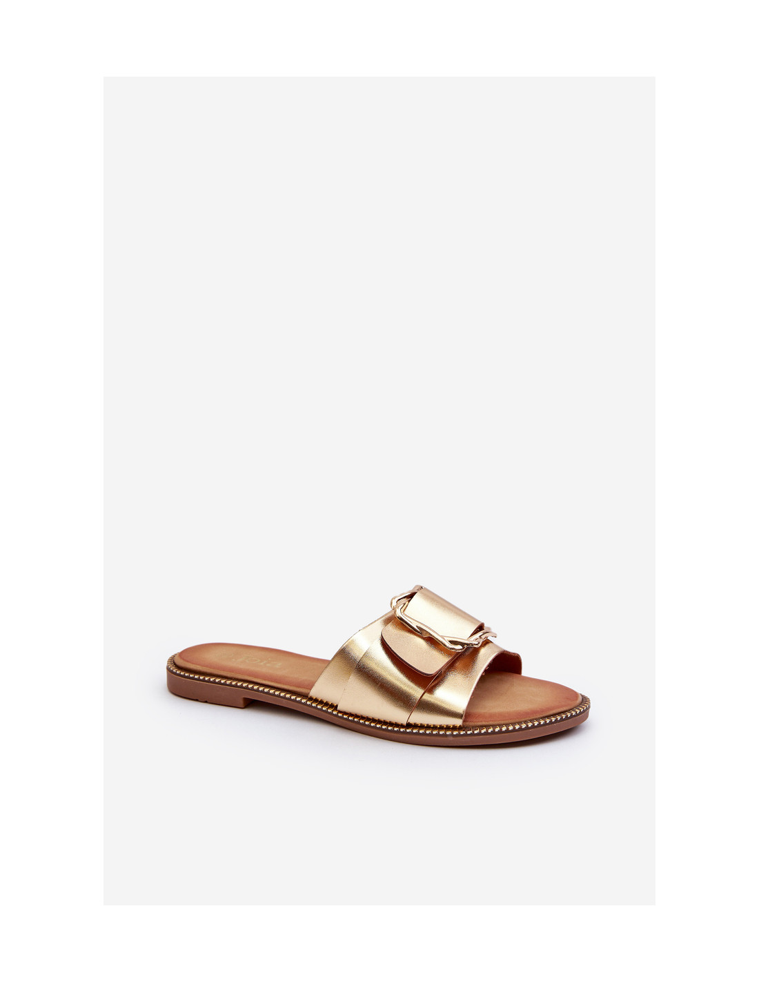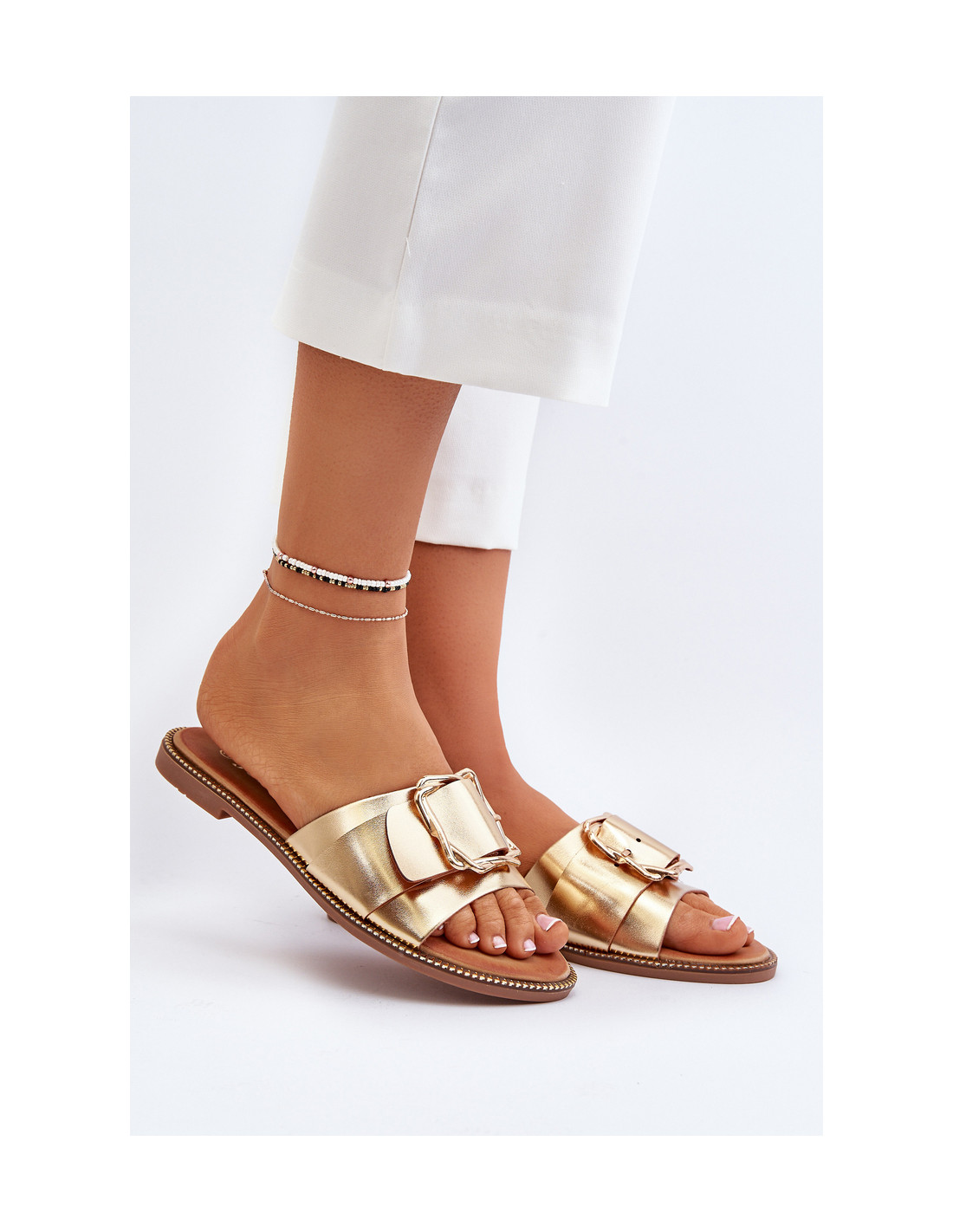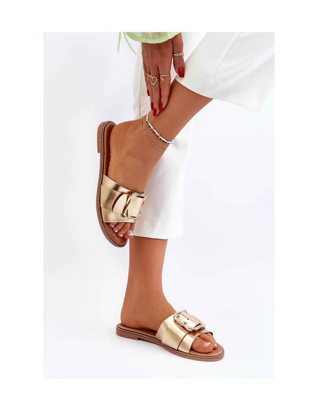 Stilingos moteriškos plokščios šlepetės – puikus pasirinkimas karštai vasarai. Pagaminti iš kokybiškos eko odos, jie ne tik atrodo elegantiškai, bet ir užtikrina patogumą dėvėti. Priekinė dalis puošta didele auksine sagtimi ir diržu. Tai privaloma turėti kiekviena madinga moteris, ieškanti patogios ir stilingos avalynės! Renkantis dydį, vadovaukitės dydžių lentele.
