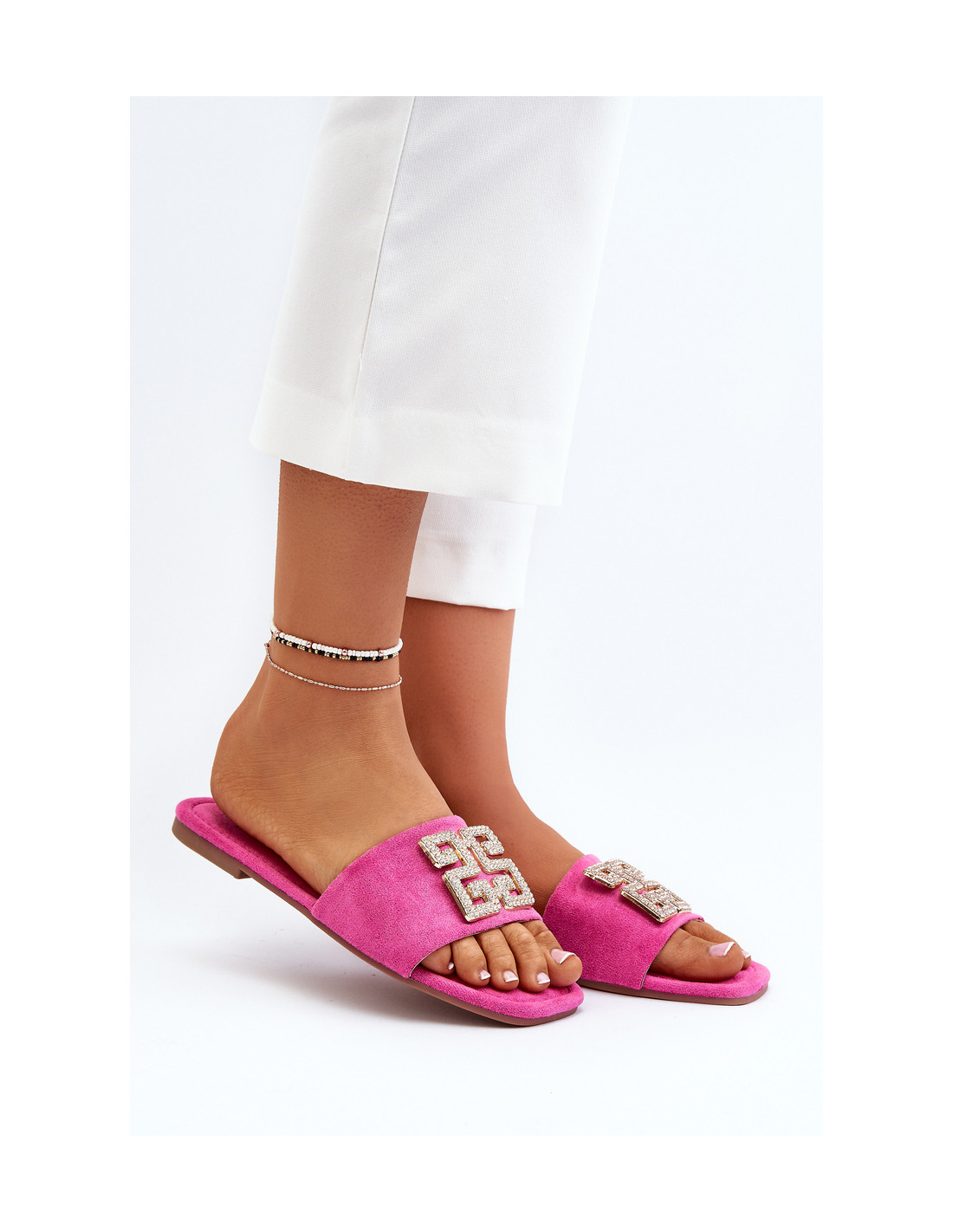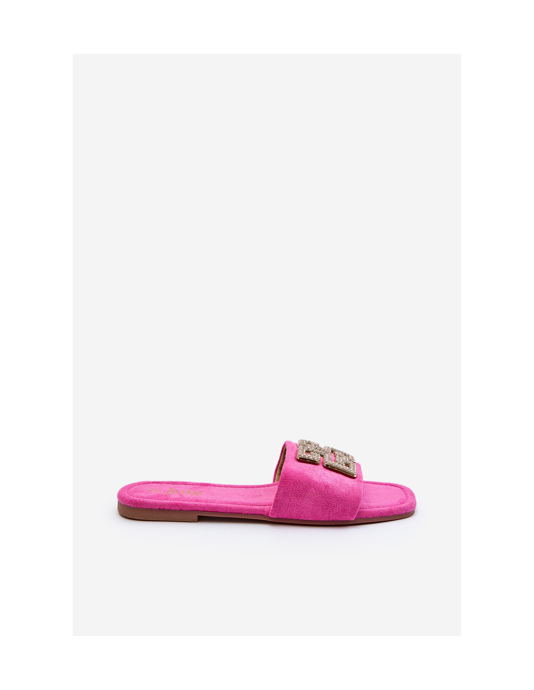 Moteriškos šlepetės su plokščiakulniais su fuksijos inaile apdaila