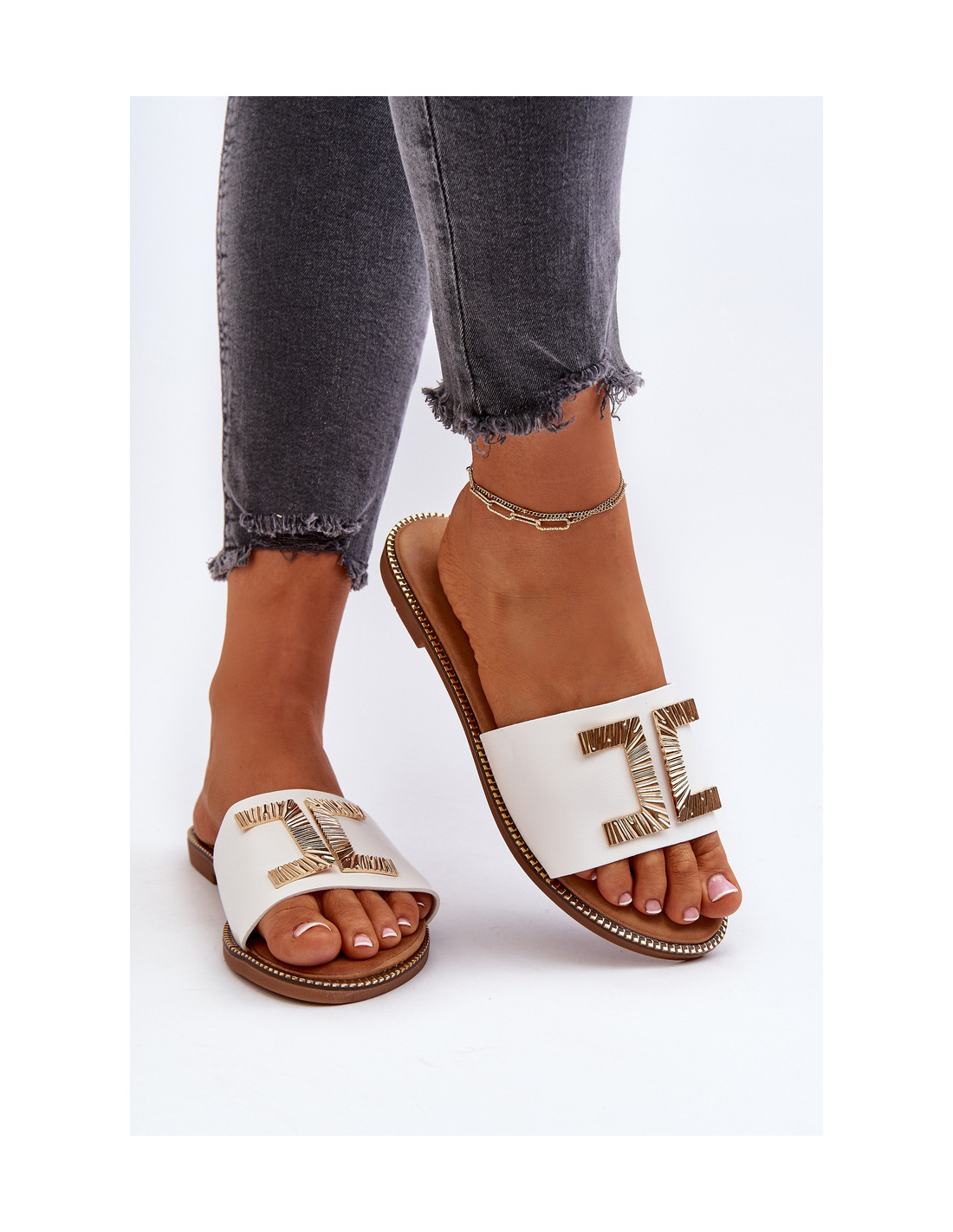 Moteriškos šlepetės su puošmena, balta Ollavia